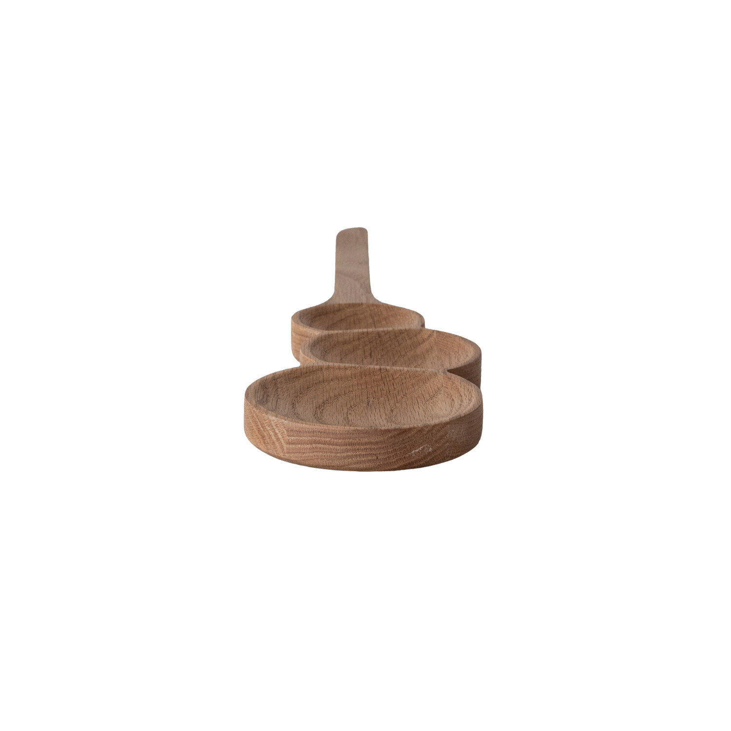 Oak Wood Abstract Shaped Serving Dish with 3 Sections & Handle, Natural