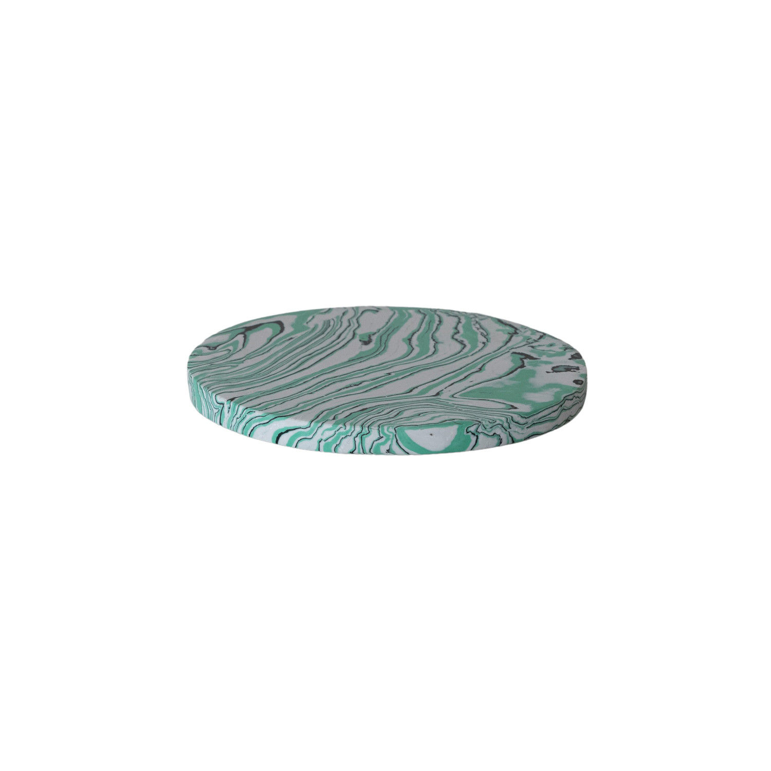 Catalog Name: 8" Round Recycled Stone & Resin Cheese/Serving Board, Marbled Multi Color (Each One Will Vary)
