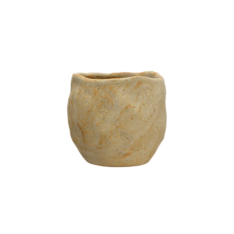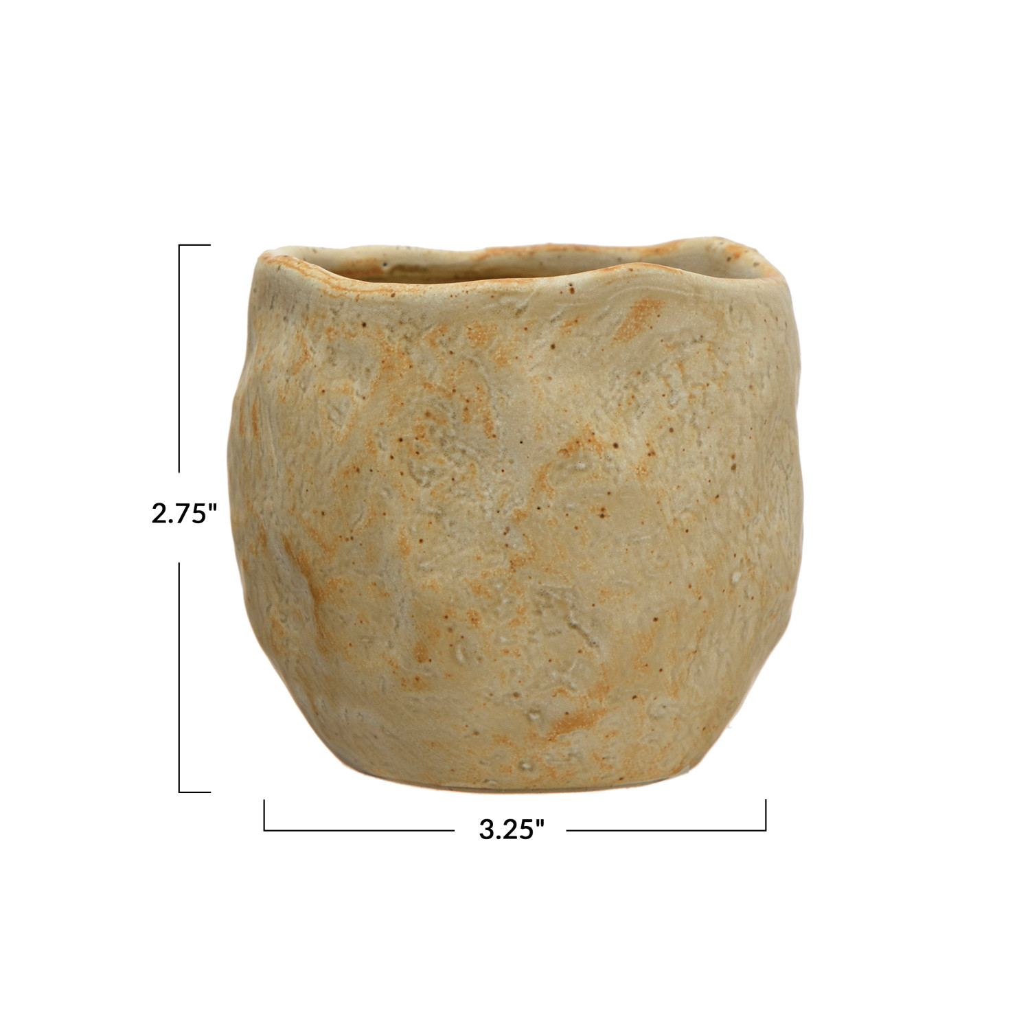Catalog Name: 3-1/4" Round x 2-3/4"H 8 oz. Stoneware Organic Shaped Cup, Reactive Glaze, Tan Color (Each One Will Vary)