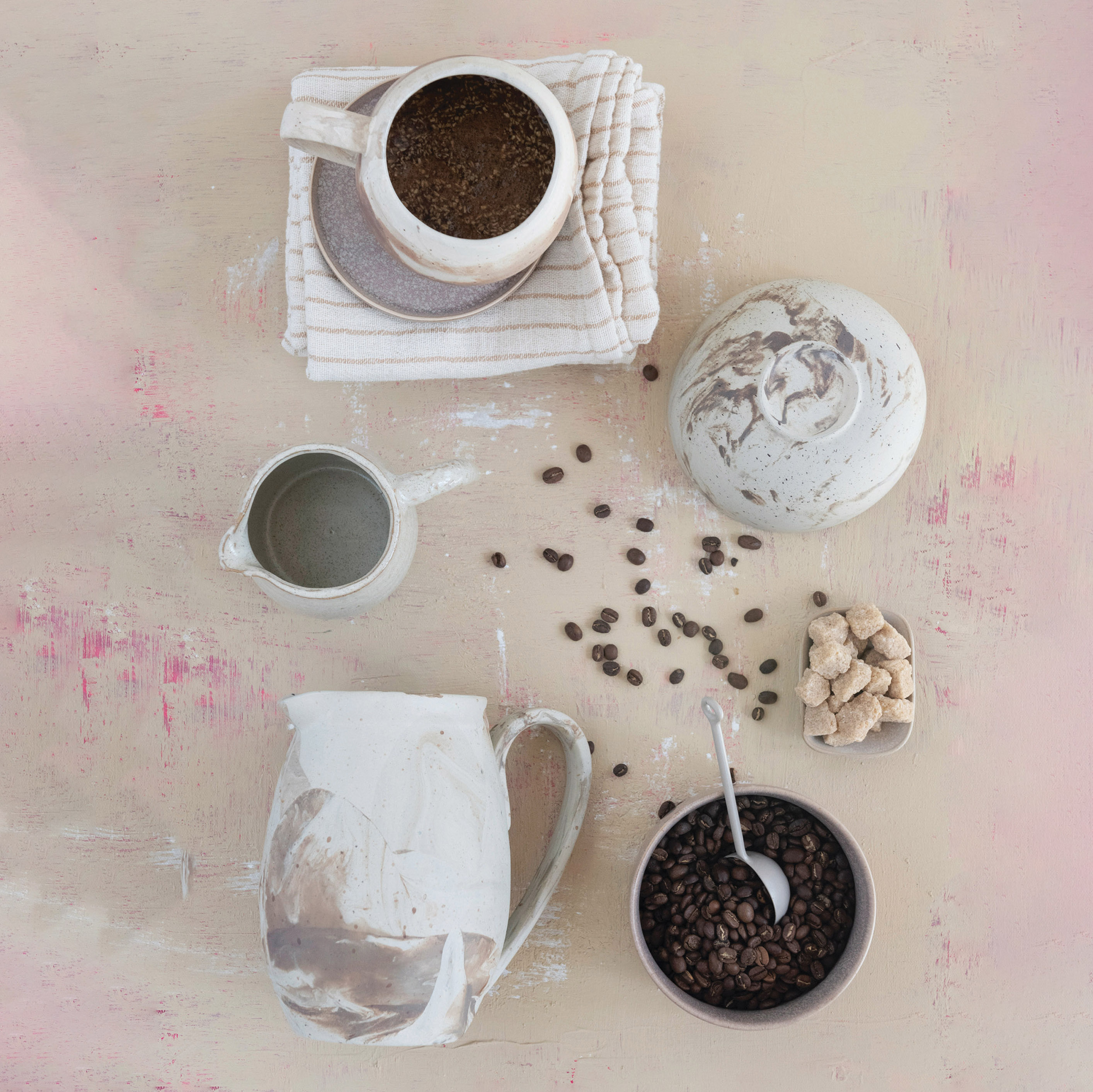 Catalog Name: 18" Square Cotton Double Cloth Napkins w/ Grid/Stripes Pattern, Caramel & Cream Color, Set of 4 Tied w/ Cotton Tape