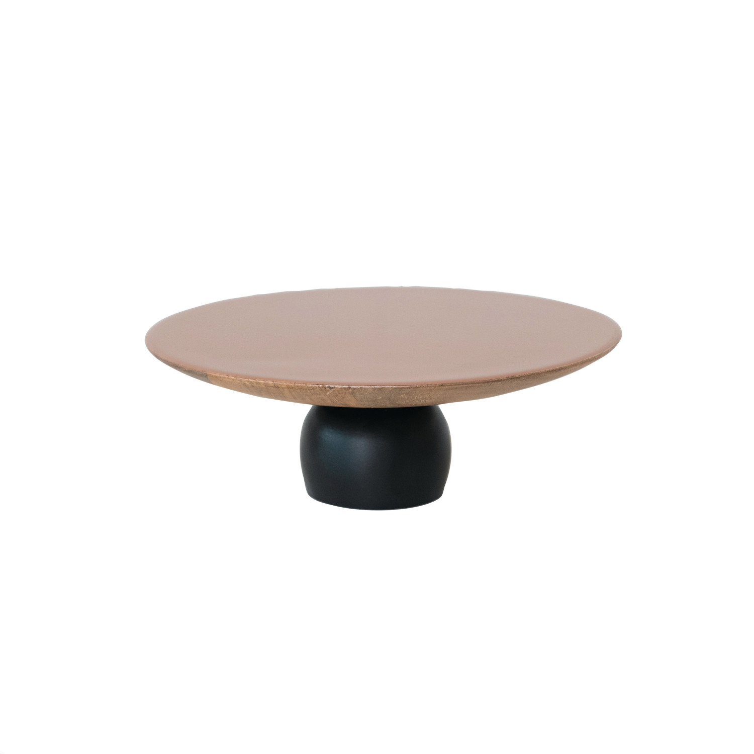 Catalog Name: 9-3/4" Round x 3-1/4"H Enameled Mango Wood Pedestal w/ Metal Base, Brown & Black