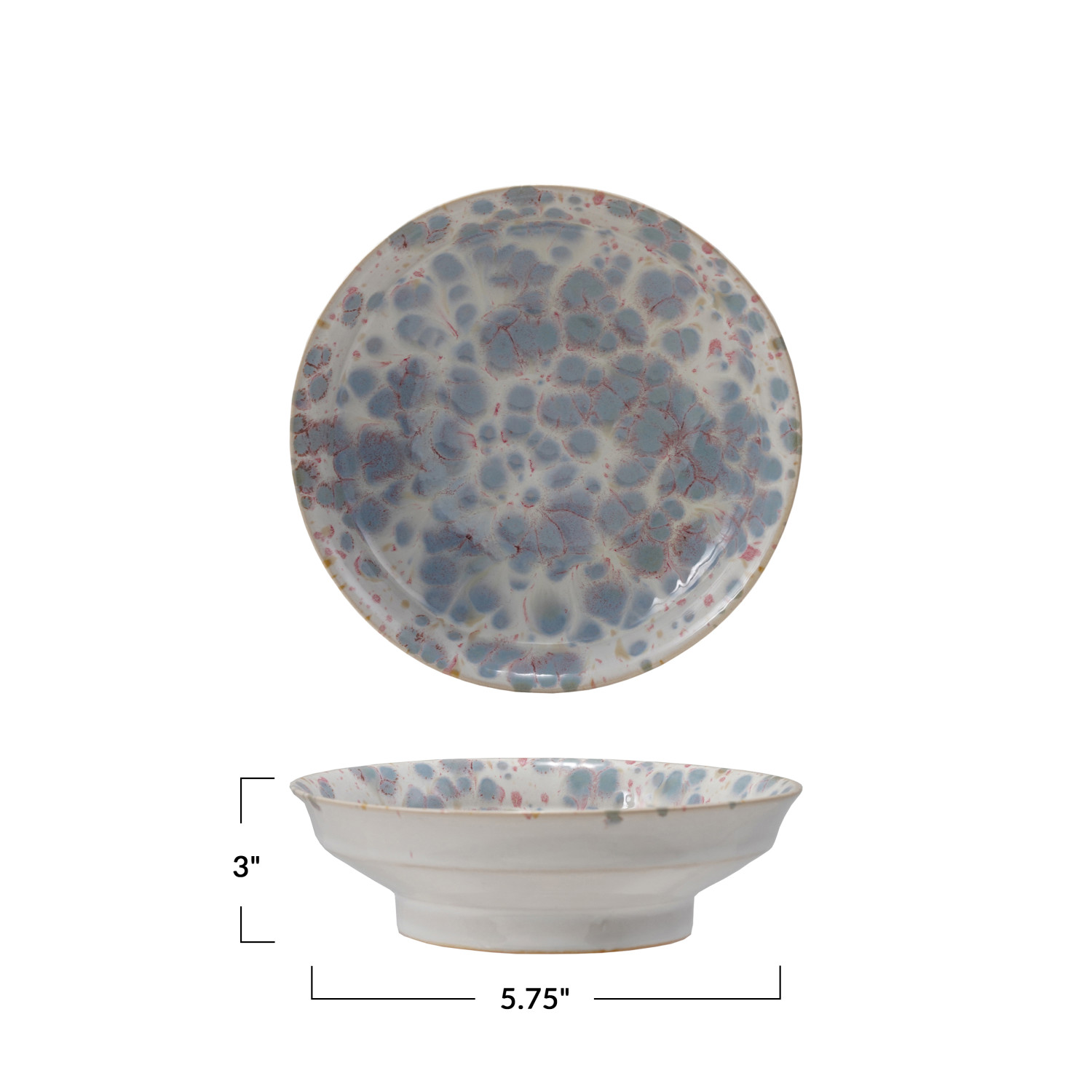 Stoneware Footed Bowl, Reactive Glaze, Blue & White (Each One Will Vary)