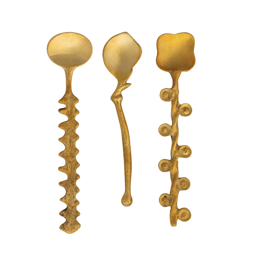 Catalog Name: Approximately 5"L Brass Spoon w/ Shaped Handle, 3 Styles