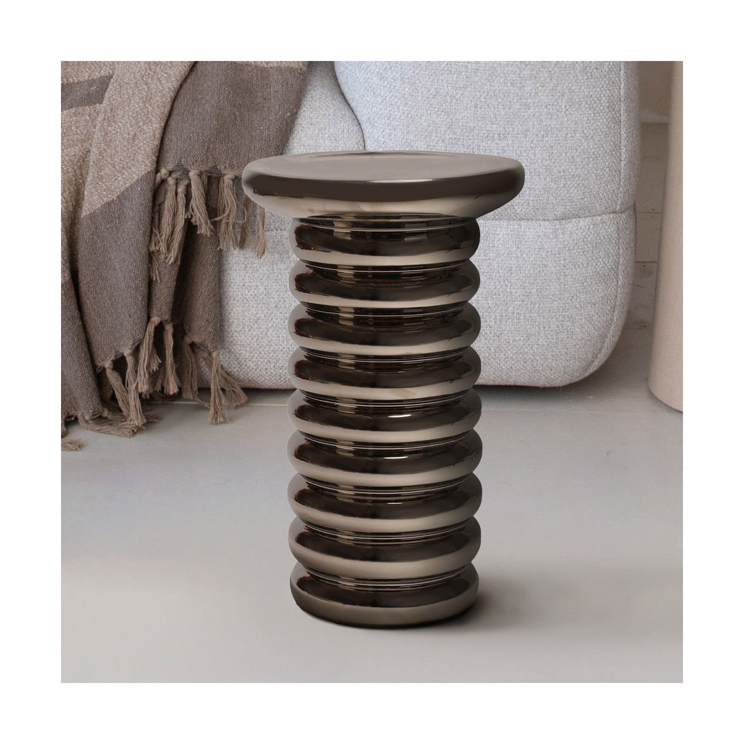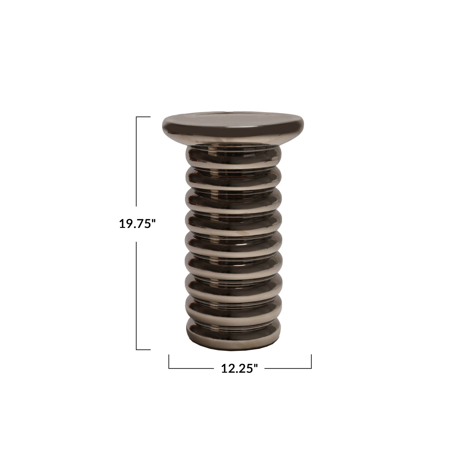 Catalog Name: 12-1/4" Round x 19-3/4"H Stoneware Ribbed Table, Chrome Finish, Truck Ship