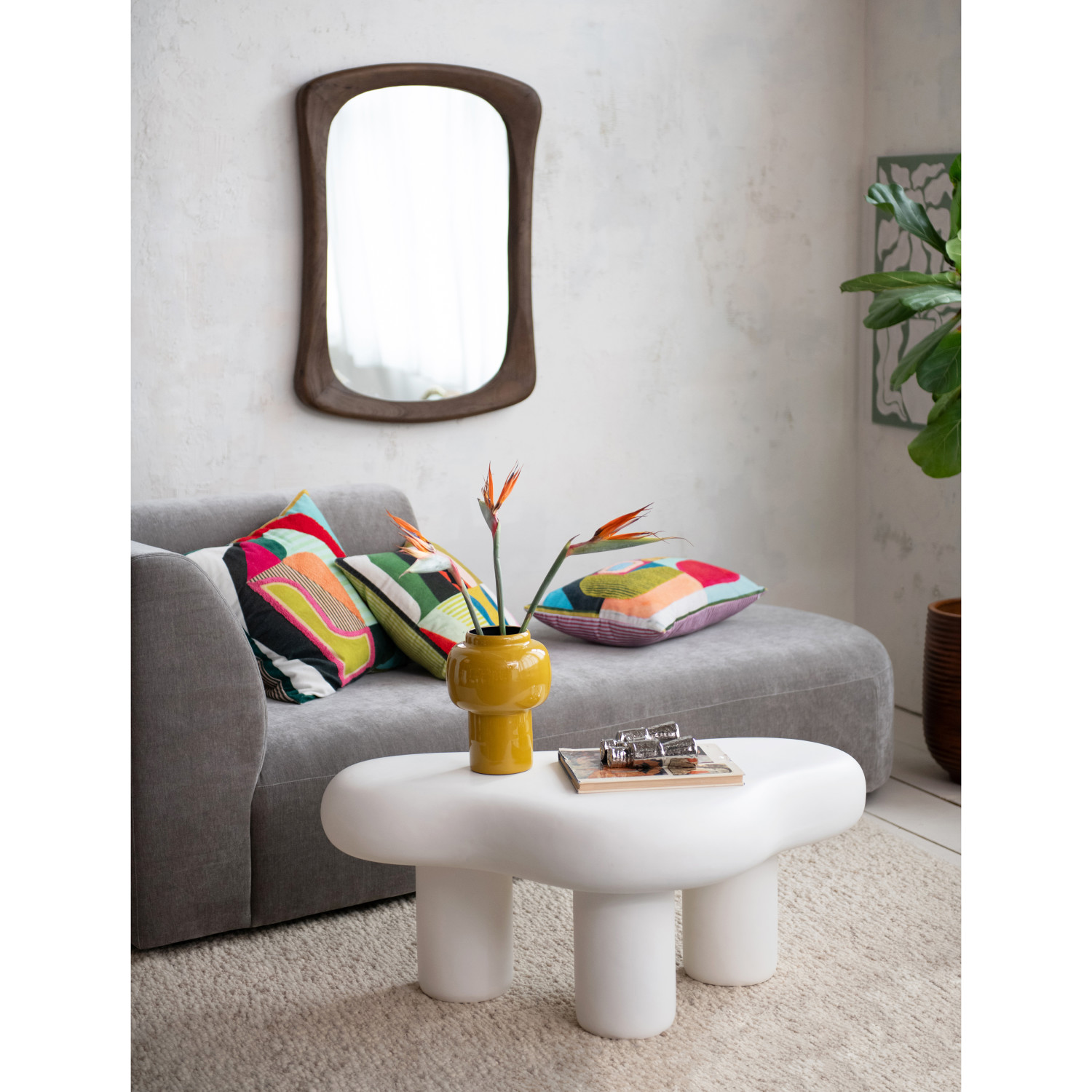 Catalog Name: 41-1/2"L x 25"W x 17"H Resin Organic Shaped Coffee Table, Cement Finish, Matte White, Truck Ship