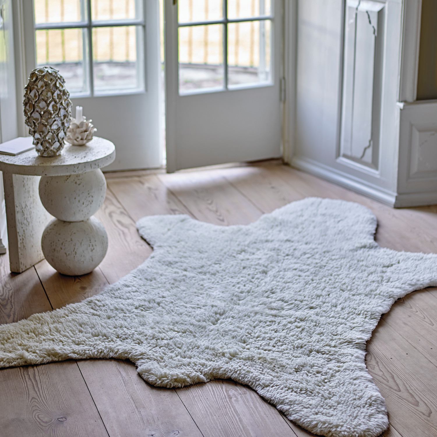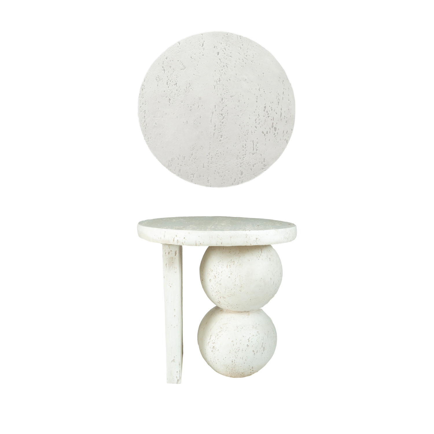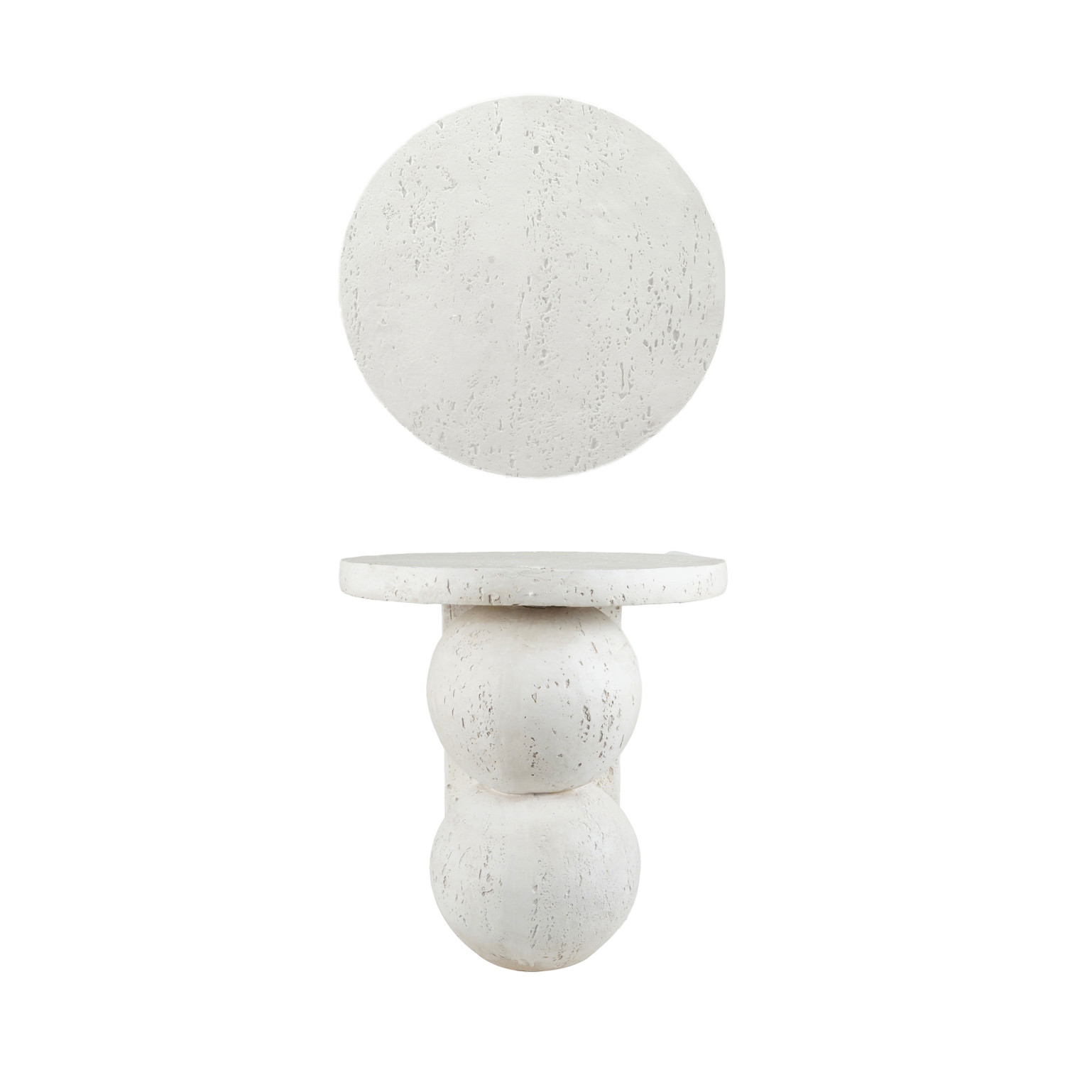 Resin Table with Stacked Ball Base, Travertine Finish, Cream Color