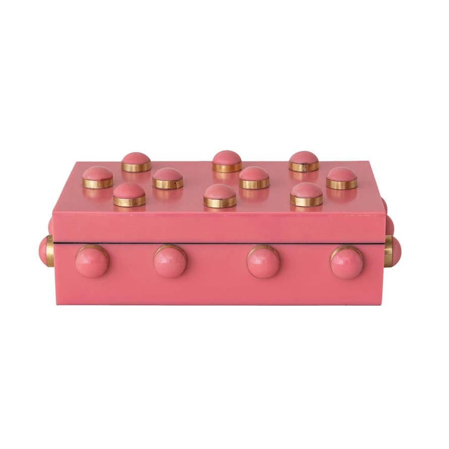 MDF, Resin & Brass Studded Box, Pink & Gold Finish