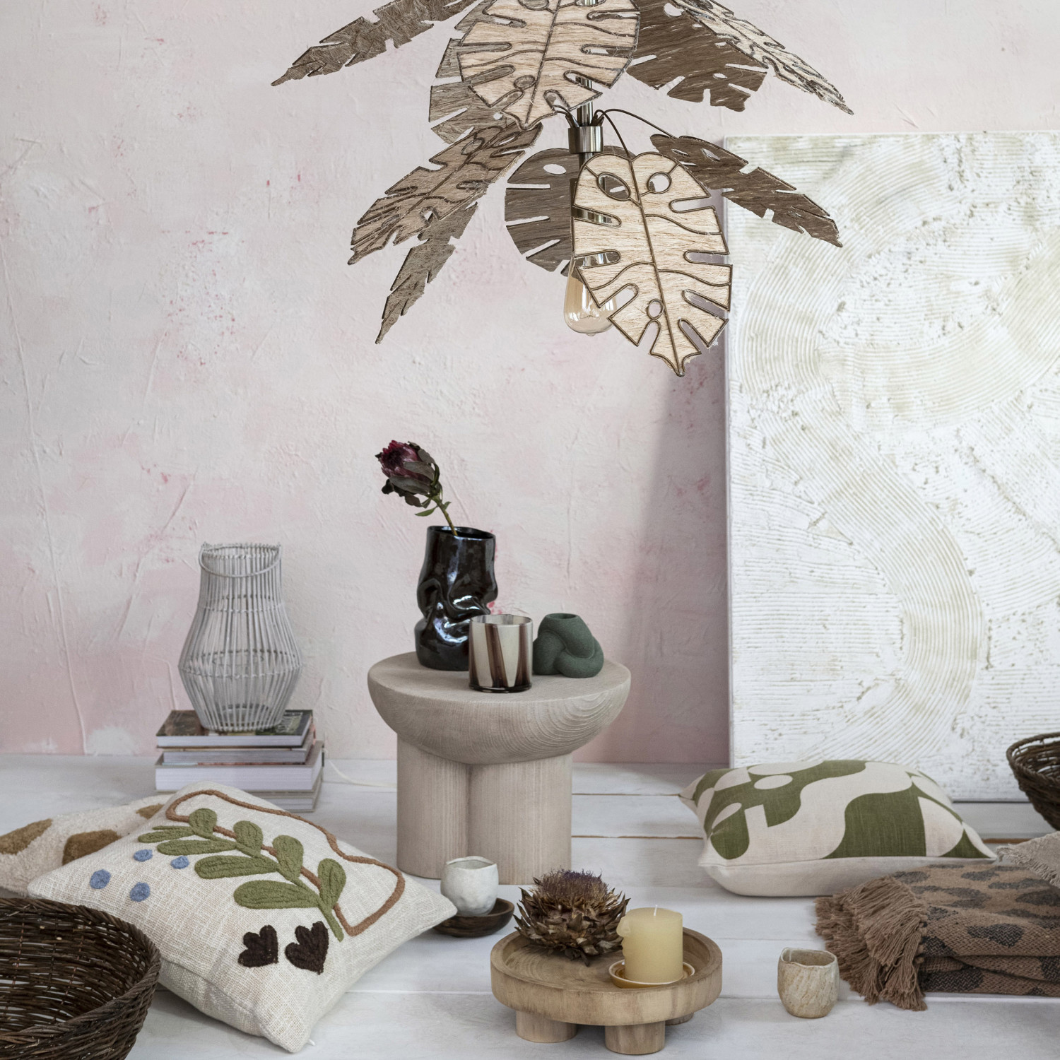 Elegant and versatile, the candle holders offered are more than mere accessories; they serve as expressions of one's style and mood. Crafted from various materials such as metal, glass, and stoneware, these candle holders boast a range of designs that effortlessly complement any decor. With the ability to accommodate an array of candle types, from tea lights to pillars, they prove to be both user-friendly and easy to maintain. Intended for use in any room where the soothing radiance of candles is desired, these holders are thoughtfully designed to elevate the ambiance and create a captivating atmosphere. Whether aiming to cultivate a romantic, cozy, or festive setting, these candle holders are well-equipped to assist. Browse through the exquisite collection to discover the perfect pieces that will illuminate space with elegance and charm. With these candle holders, the home or event will be transformed into a captivating haven. Exquisite hand-woven bamboo lantern complete with metal handle and glass insert, and finished in a captivating, whitewashed hue. This candle lantern creates a charming and serene atmosphere in any home or office. Use it in different ways: on a walkway path, on a coffee or mantel table, or as a wall art piece. Primarily made of bamboo with iron and glass.