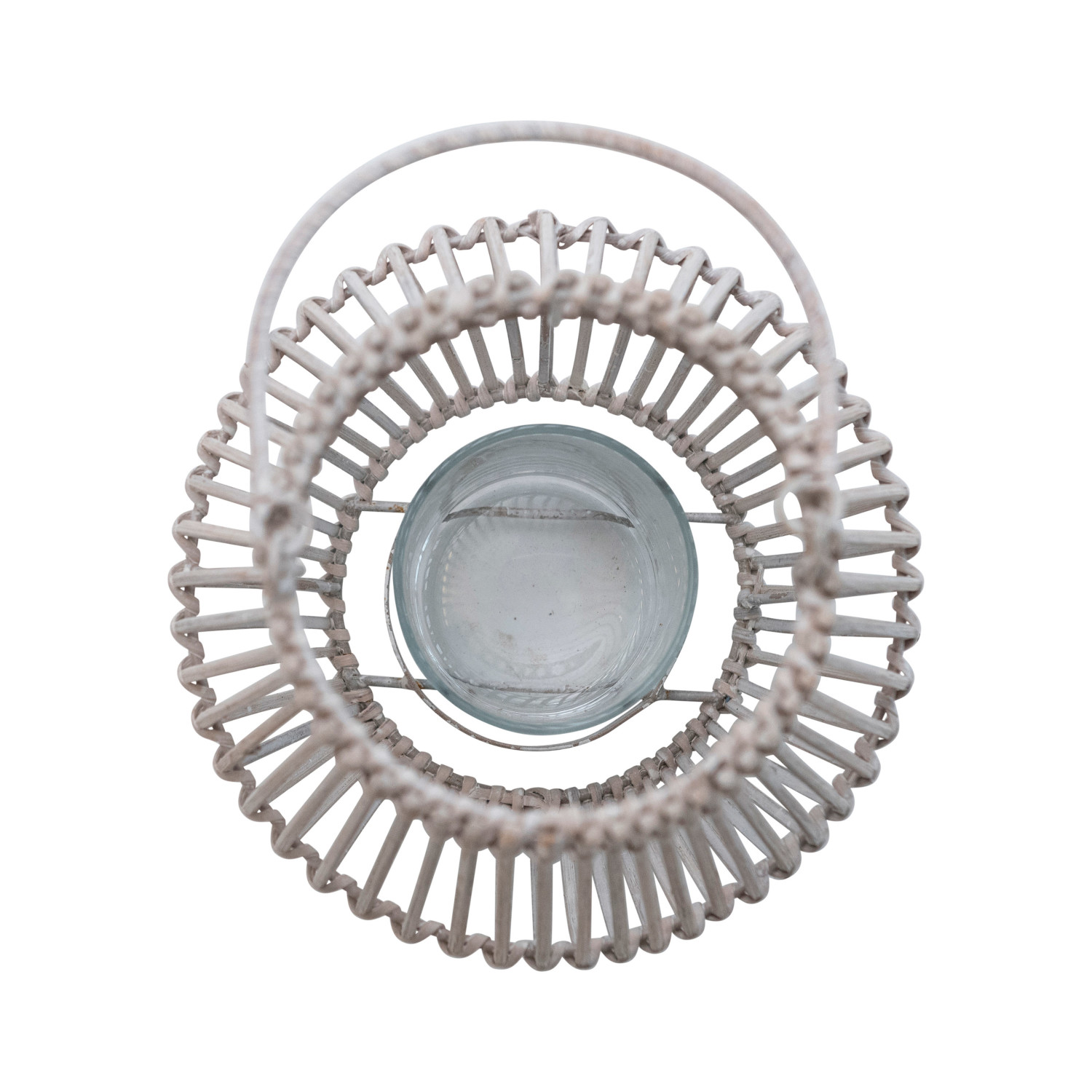 Catalog Name: 8-1/4" Round x 11-3/4"H Hand-Woven Bamboo Lantern w/ Handle & Glass Insert, Whitewashed