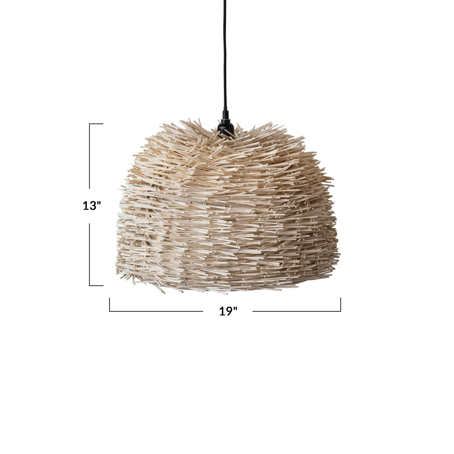 Catalog Name: 19"L x 18"W x 13"H Hand-Woven Rattan Pendant Lamp, 6' Cord, Natural (Hardwire Only)