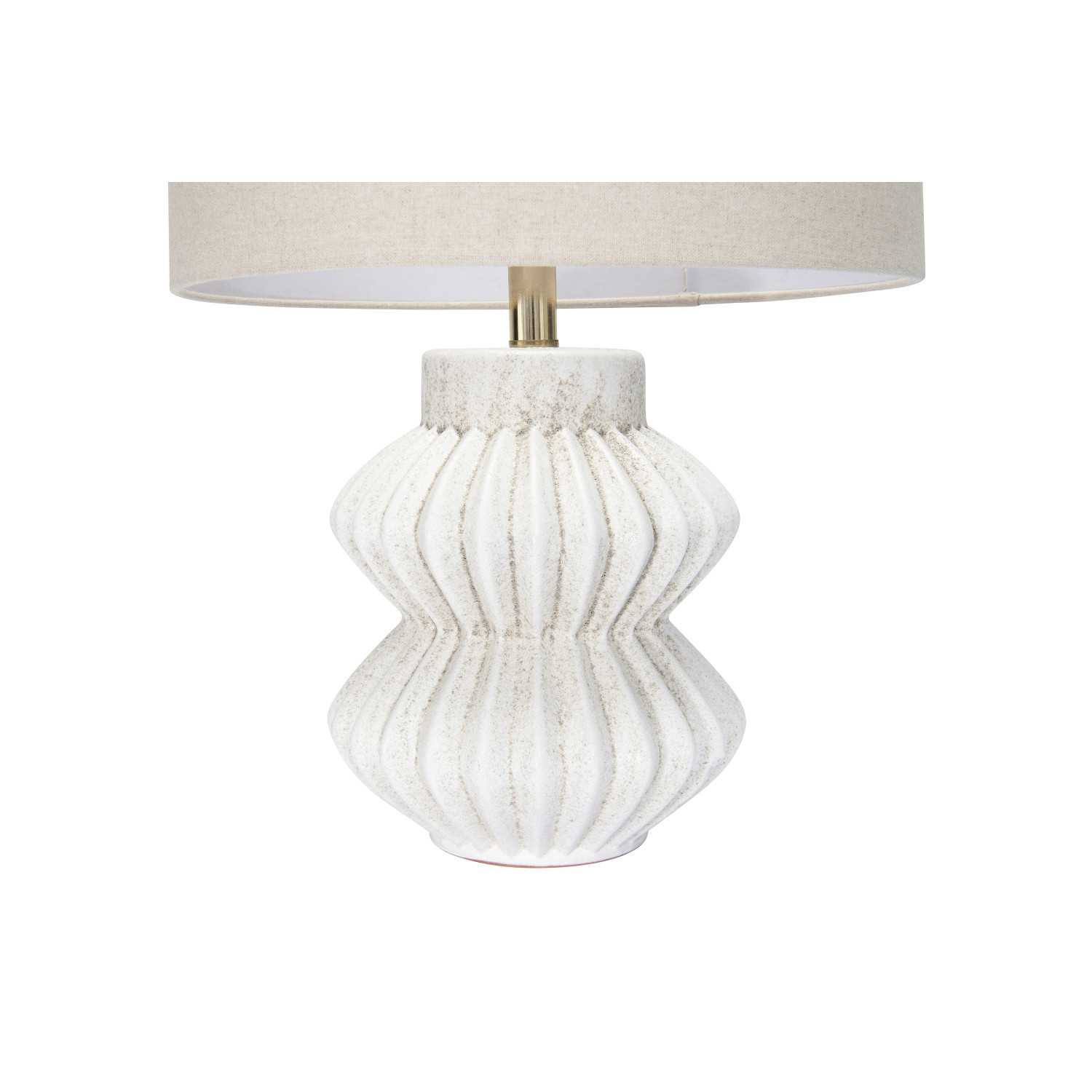 Catalog Name: 15" Round x 22"H Terra-cotta Fluted Table Lamp w/ Linen Shade, Distressed Cream Color