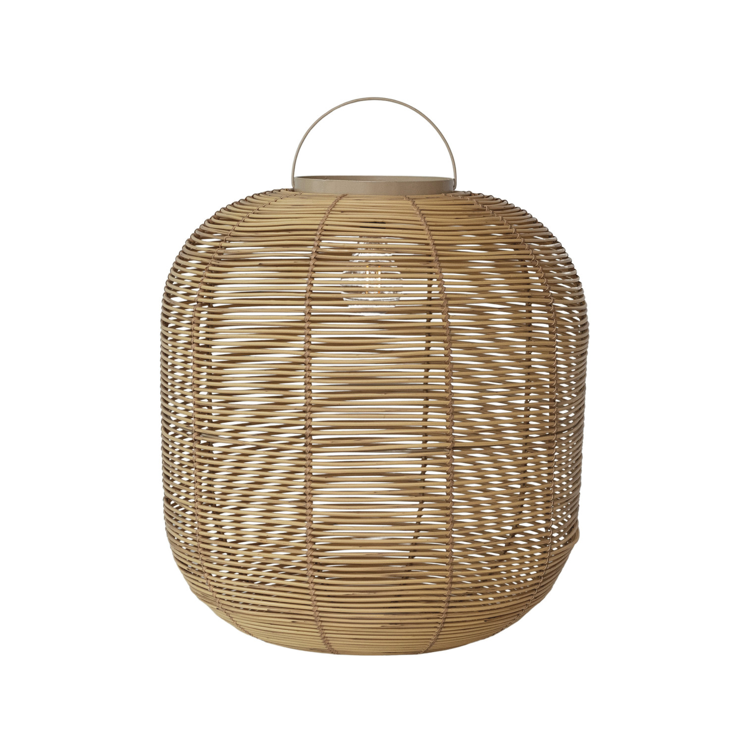 Catalog Name: 18-1/2" Round x 19-3/4"H Woven Plastic Solar Powered LED Lantern w/ Handle, Natural Finish (Bulb Included)