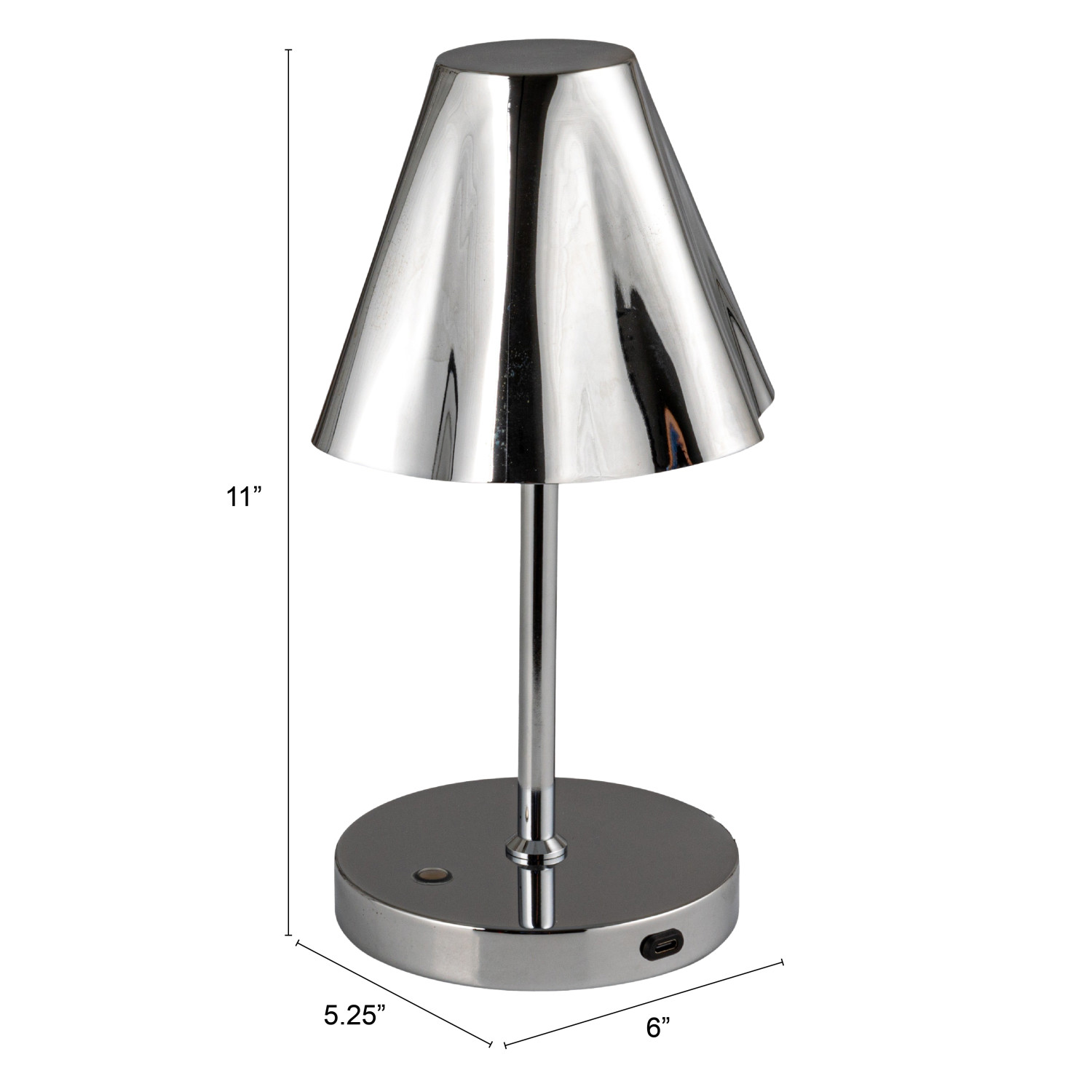 Catalog Name: 5-1/2" Round x 11"H Metal LED Table Lamp w/ Ruffled Shade & Touch Sensor, Chrome Finish (1 Rechargeable Battery & USB-C Cord Included)