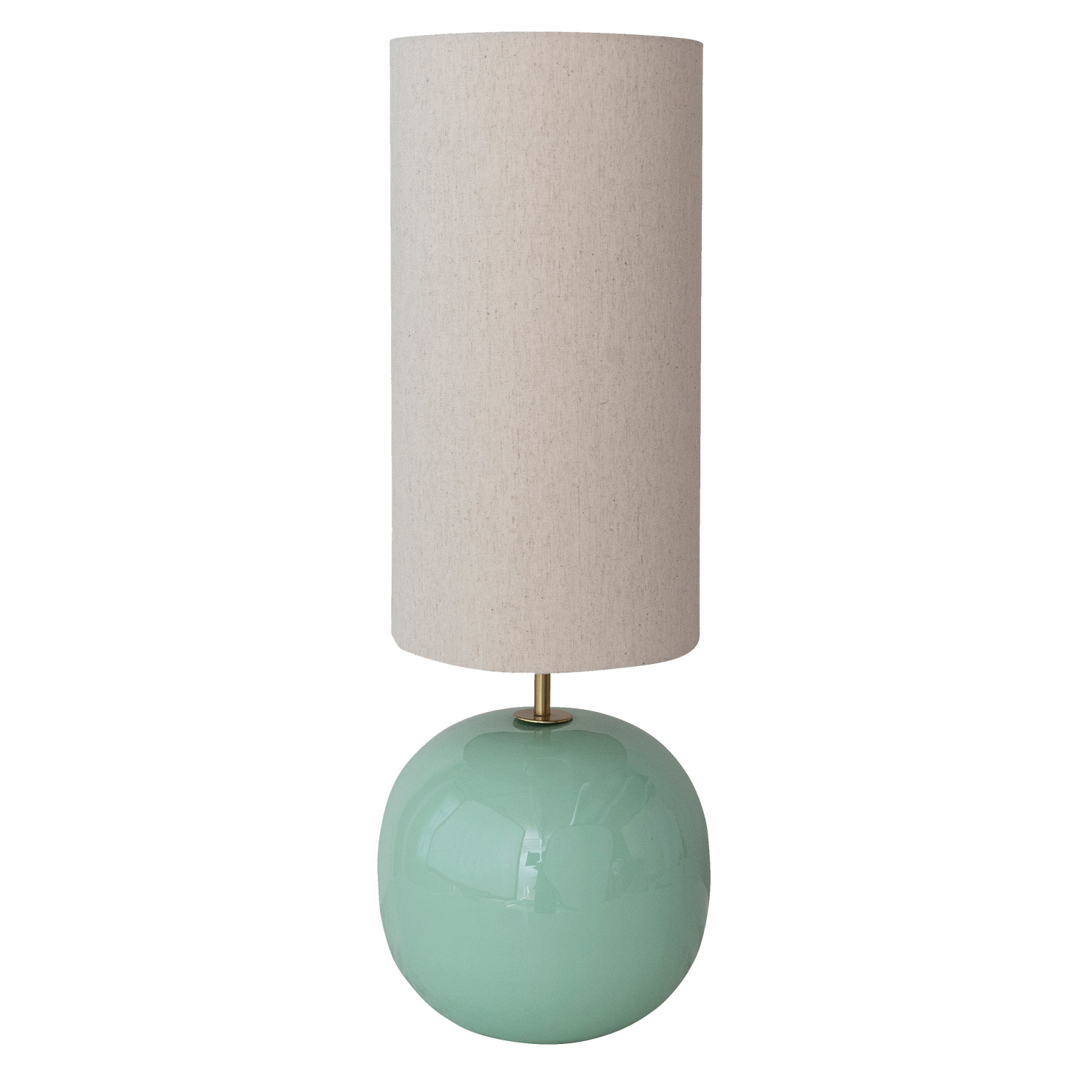 Catalog Name: 10-1/4" Round x 29-1/2"H Enameled Metal Table Lamp w/ Linen Shade & Inline Switch, Mint Color