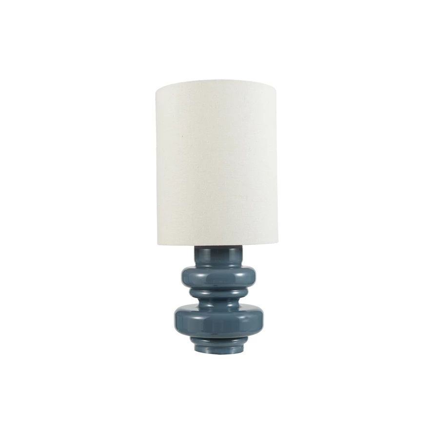 Catalog Name: 9-1/4" Round x 20"H Glass Table Lamp w/ Linen Shade & Inline Switch, Grey