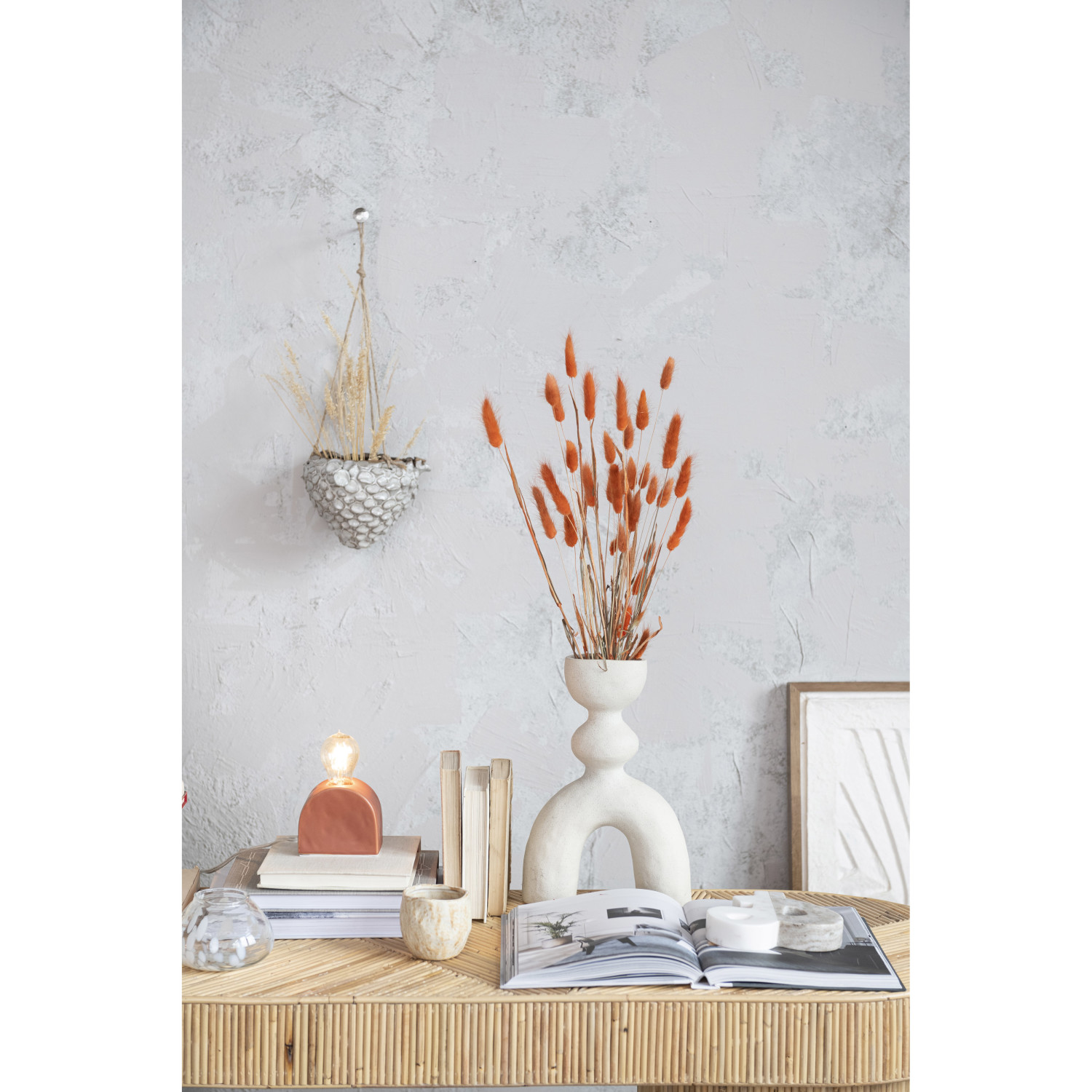 Mix and match our carefully curated collection of standing, wall mount, and decorative pots and planters. Explore a vast array of textures, hues, and silhouettes to create a personalized indoor jungle, including planters on stands, wall buckets, oversized pots, hanging planters, figurine planters, window boxes, footed pots, and so much more. Choose from a wide array of materials from stoneware and ceramic to metal and glass, and styles from contemporary boho and classic farmhouse to mid-century modern and vintage glam. Showcase lovingly grown herbs and greenery inside pieces from this artfully crafted collection, or simply use as a stylish cover for low-maintenance faux flora. This coastal-inspired planter features intricately pieced seashells suspended from a woven rope. Display in a living space of any style from Scandinavian to coastal. Not equipped with drainage holes. Made from stoneware and hemp.