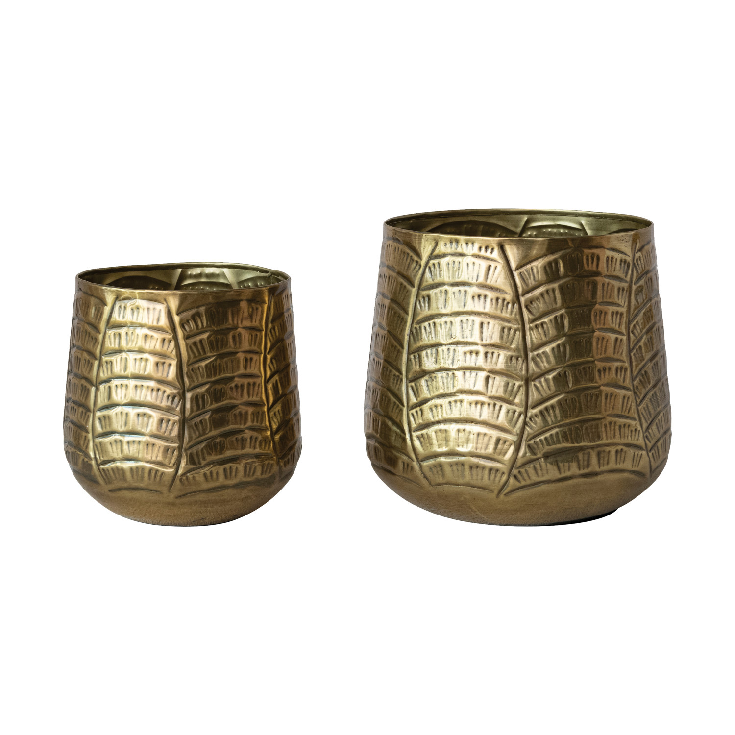 Debossed Metal Planters, Antique Brass Finish, Set of 2 (Holds 6" & 4" Pots)