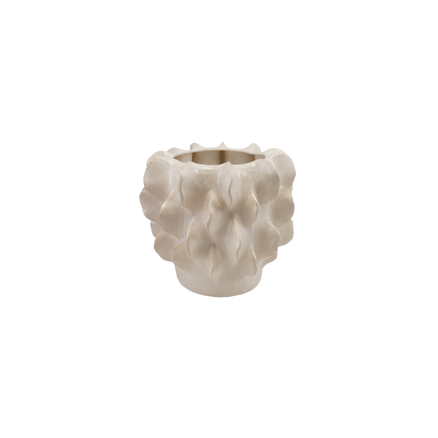 Catalog Name: 18" Round x 16"H Stoneware Sculptural Planter, Reactive Glaze, Cream Color, Truck Ship (Each One Will Vary)