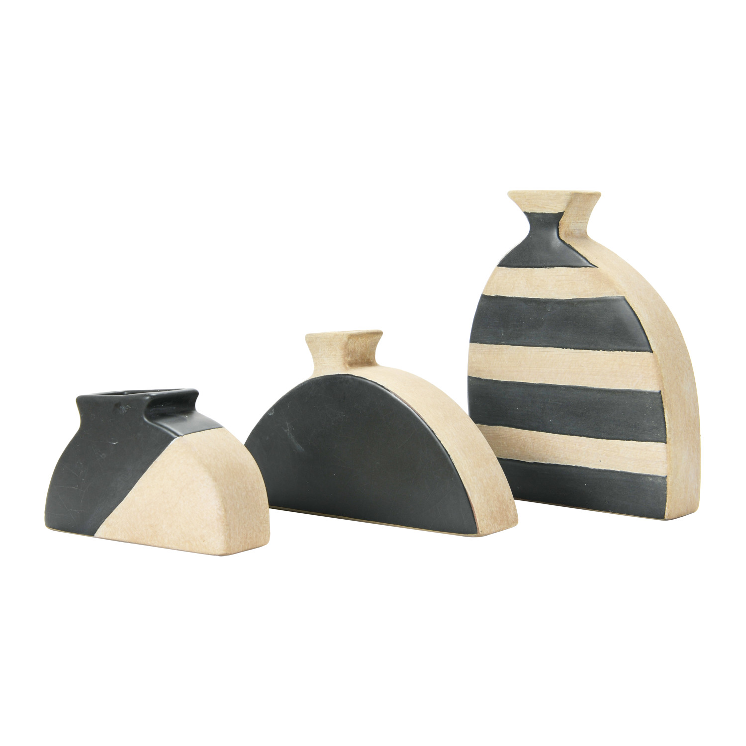 Catalog Name: 8-1/2"H, 6-3/4"H & 6-1/4"H Terra-cotta Vases, Natural & Black, Set of 3