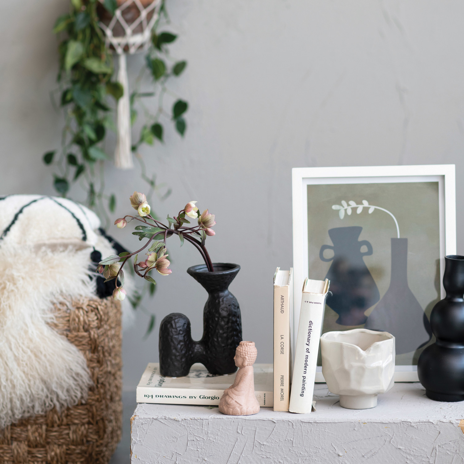 This textured stoneware vase features a sculptural silhouette in a stylish matte finish.