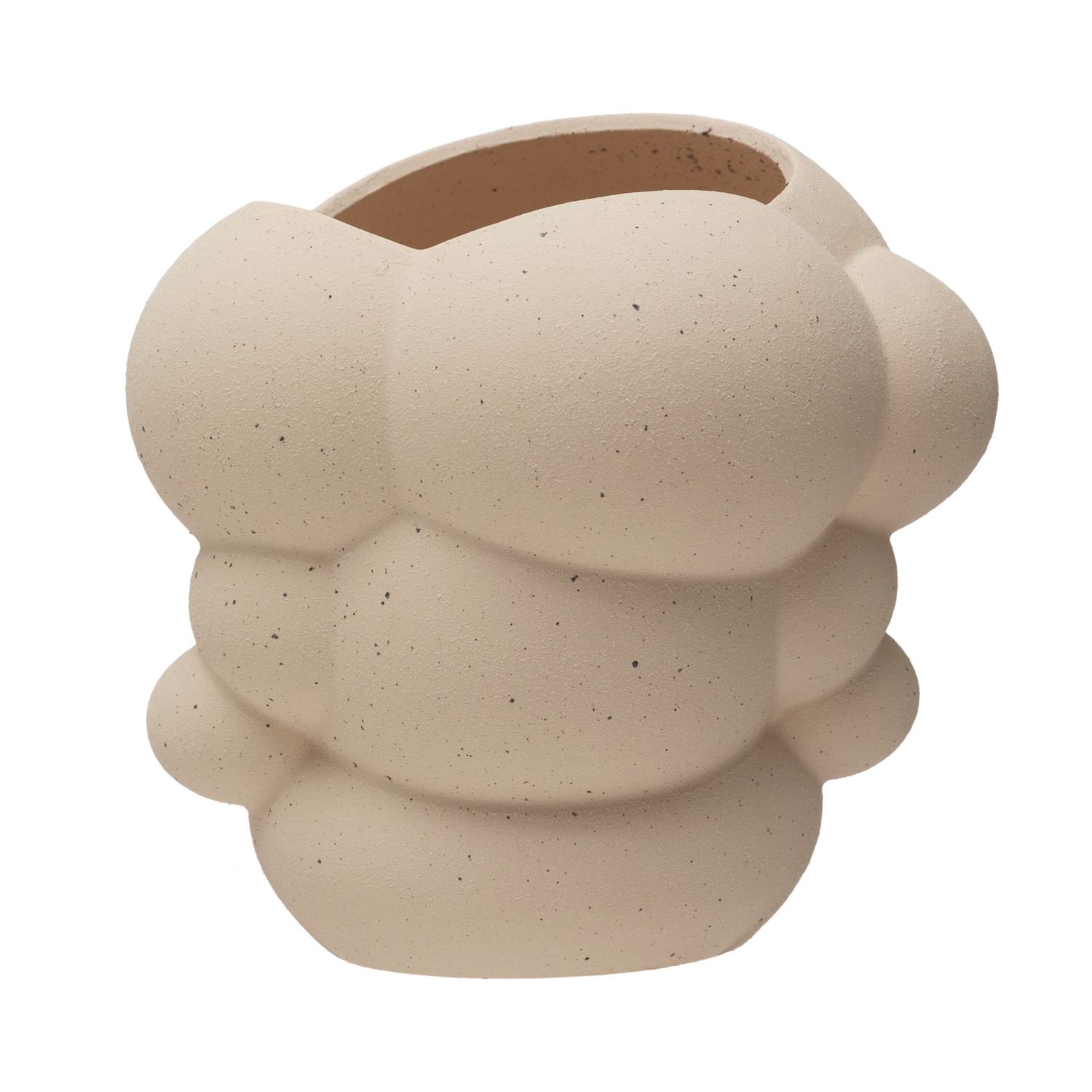 Catalog Name: 7-3/4" Round x 7-3/4"H Stoneware Formed Vase, Sand Finish, Cream Color