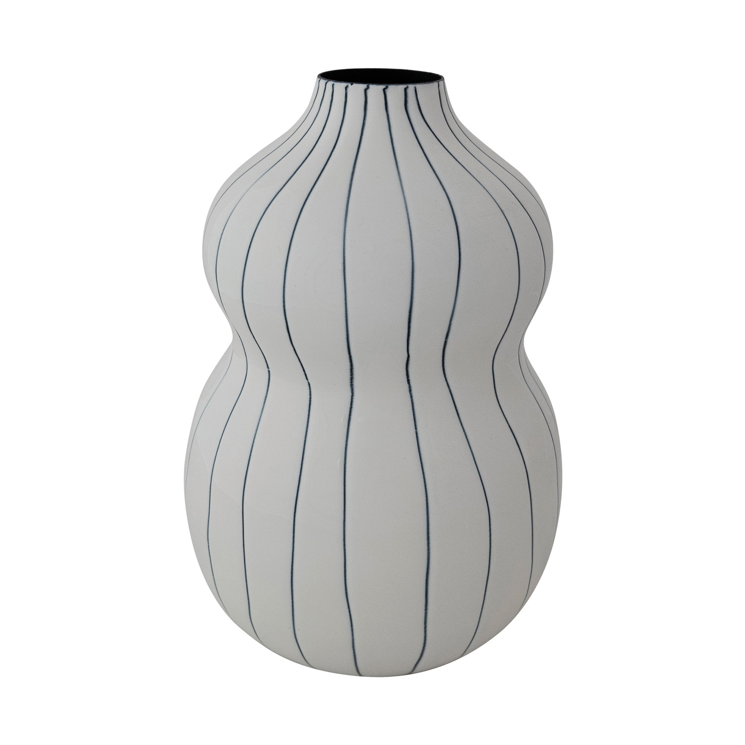 Catalog Name: 5-1/2" Round x 9"H Enameled Metal Organic Striped Vase, White & Blue