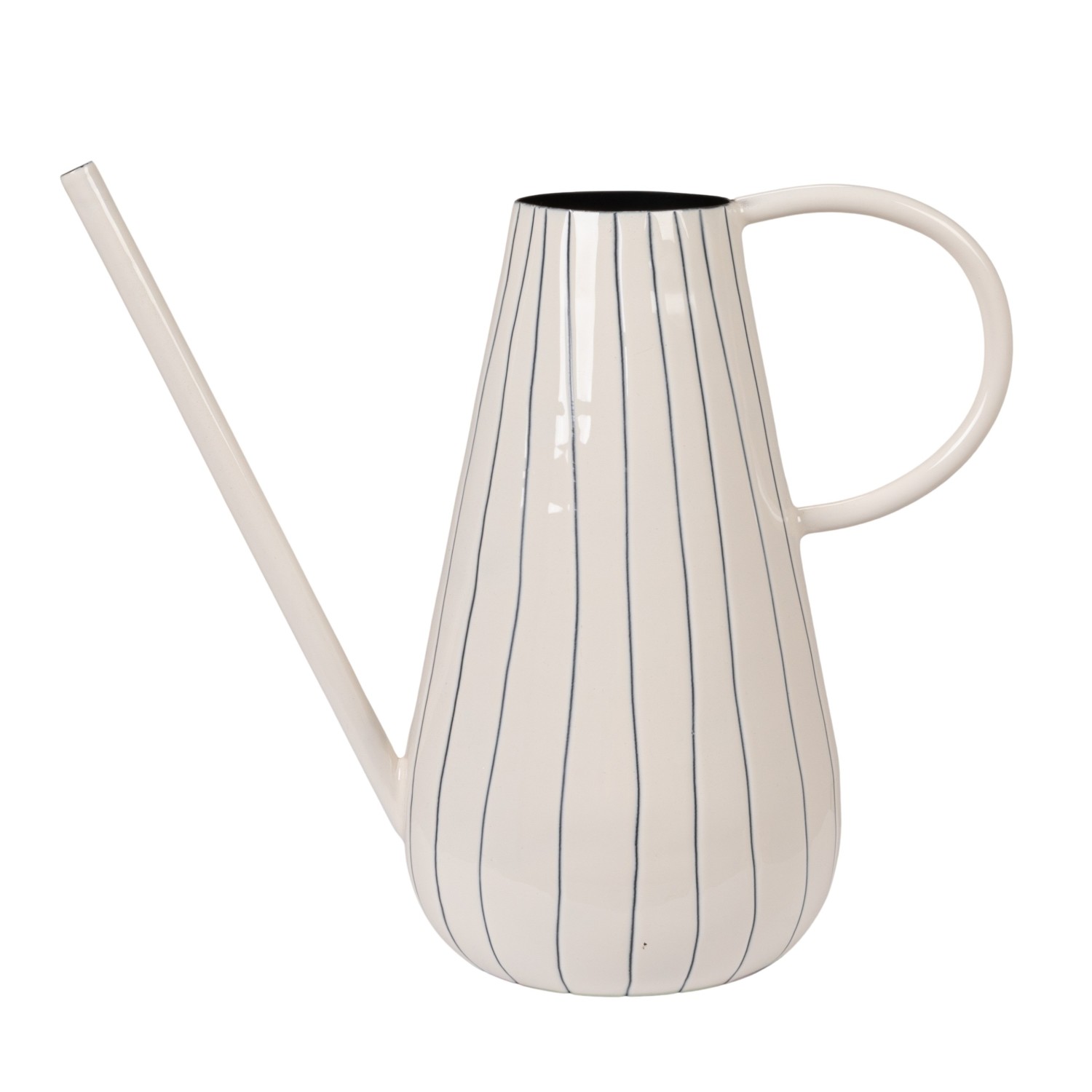 Catalog Name: 12-1/2"L x 6"W x 11"H 3 Quart Enameled Metal Organic Striped Watering Can, White & Blue