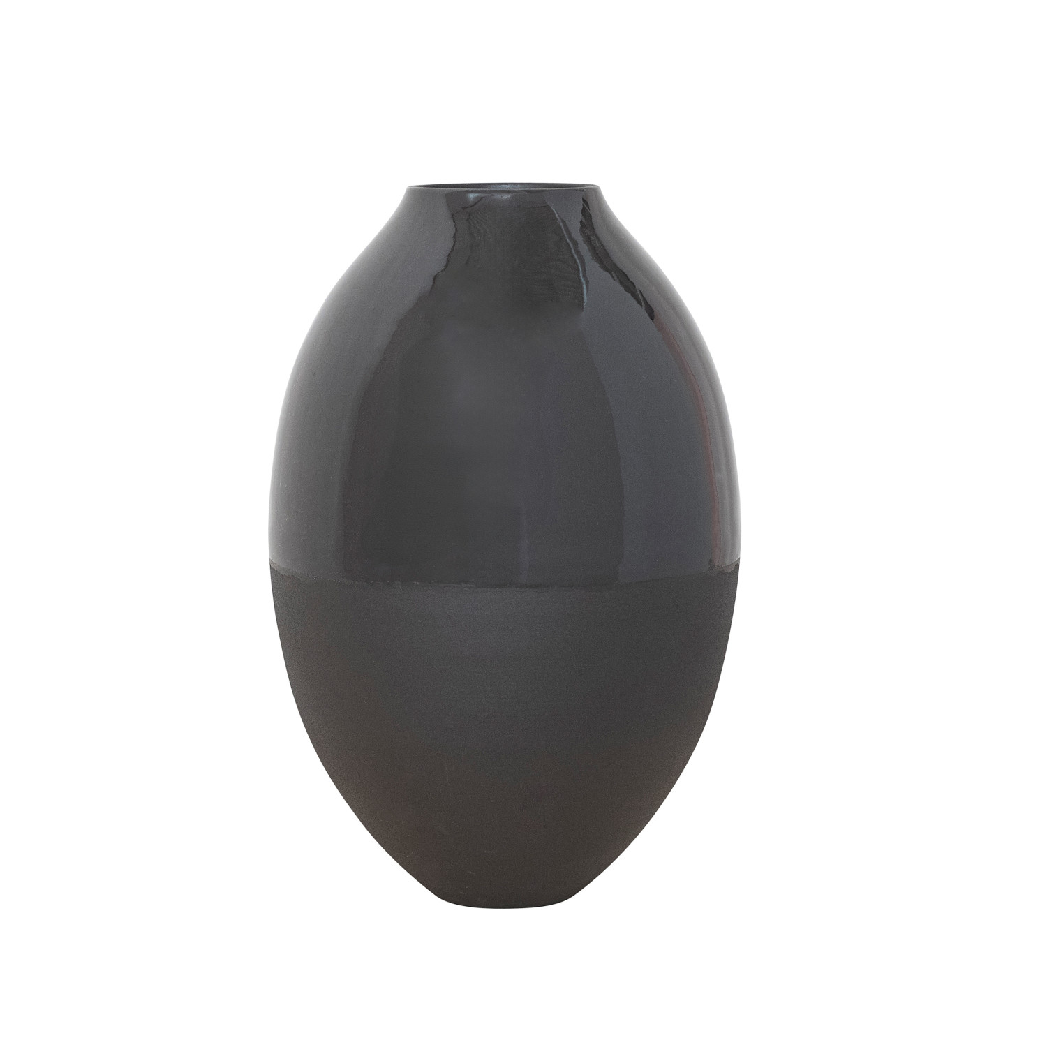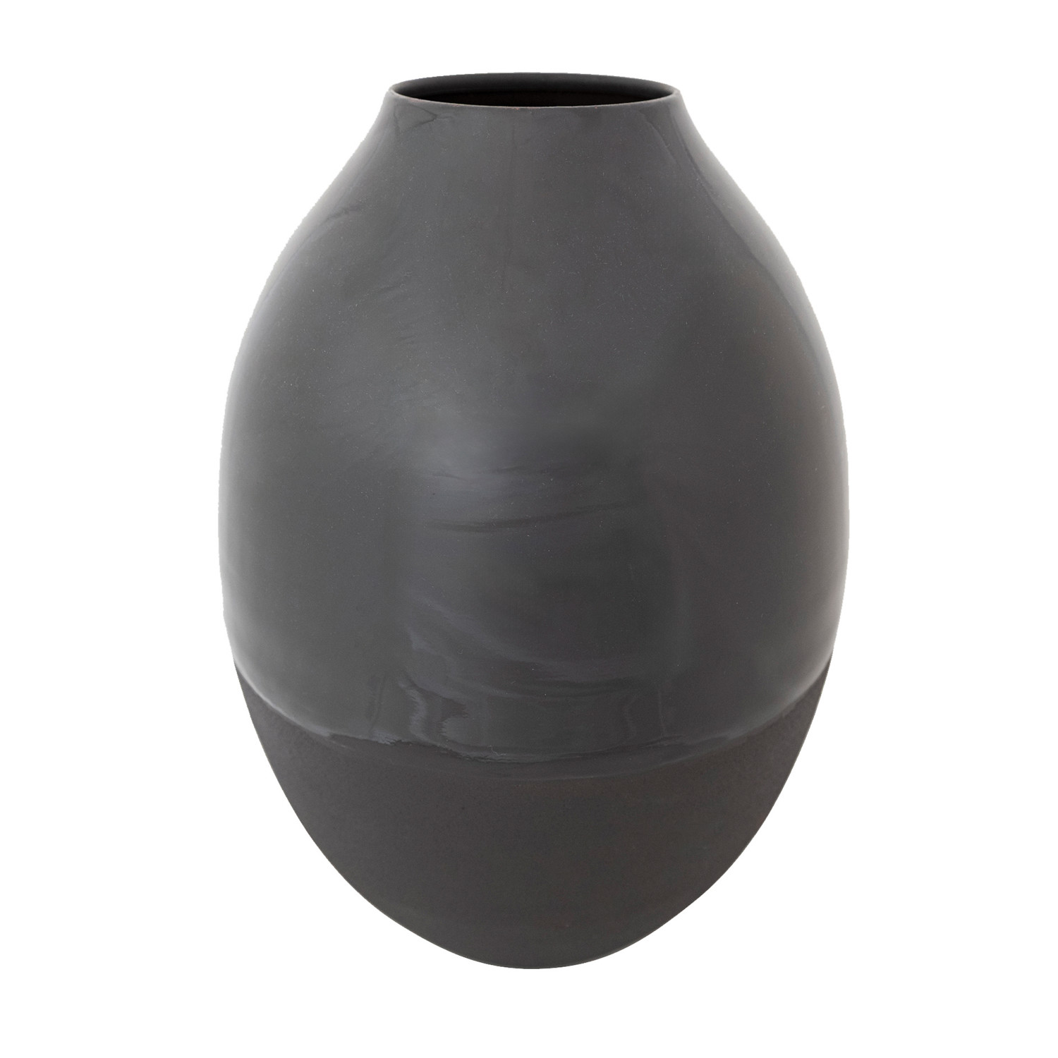 Catalog Name: 12" Round x 18"H Two-Textured Enameled Metal Vase, Smooth & Sand Finish, Charcoal Color