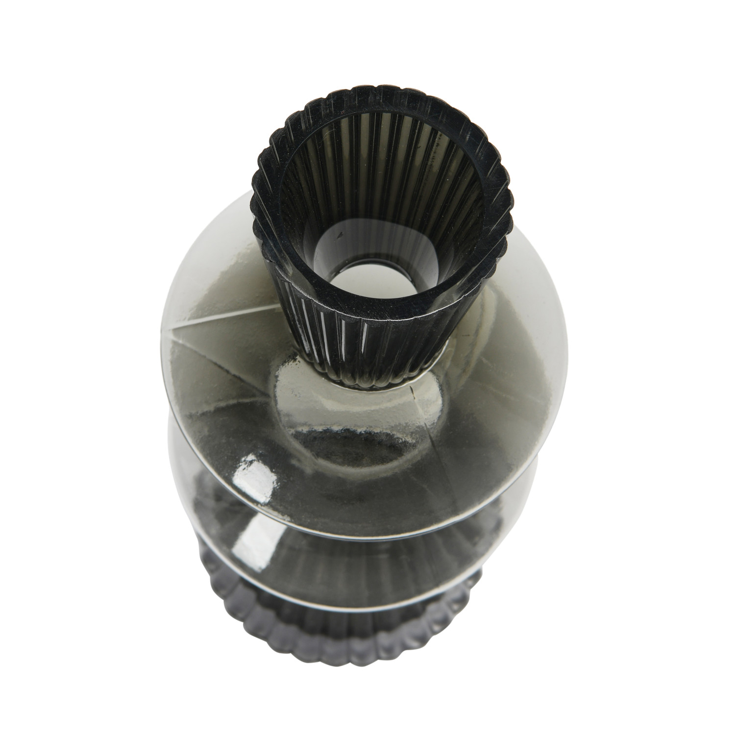 Catalog Name: 4-1/4" Round x 10-1/4"H Glass Fluted Vase, Smoke Color