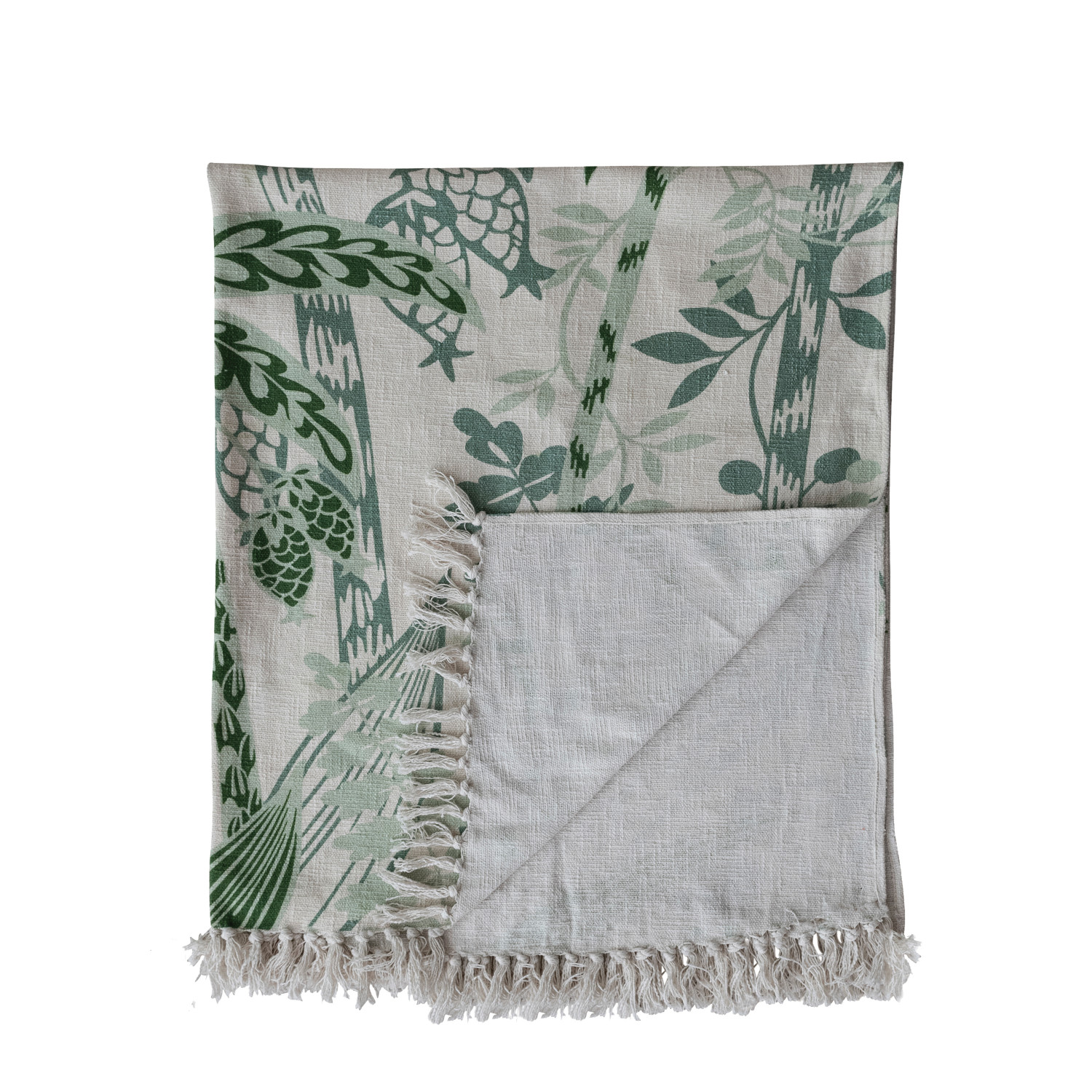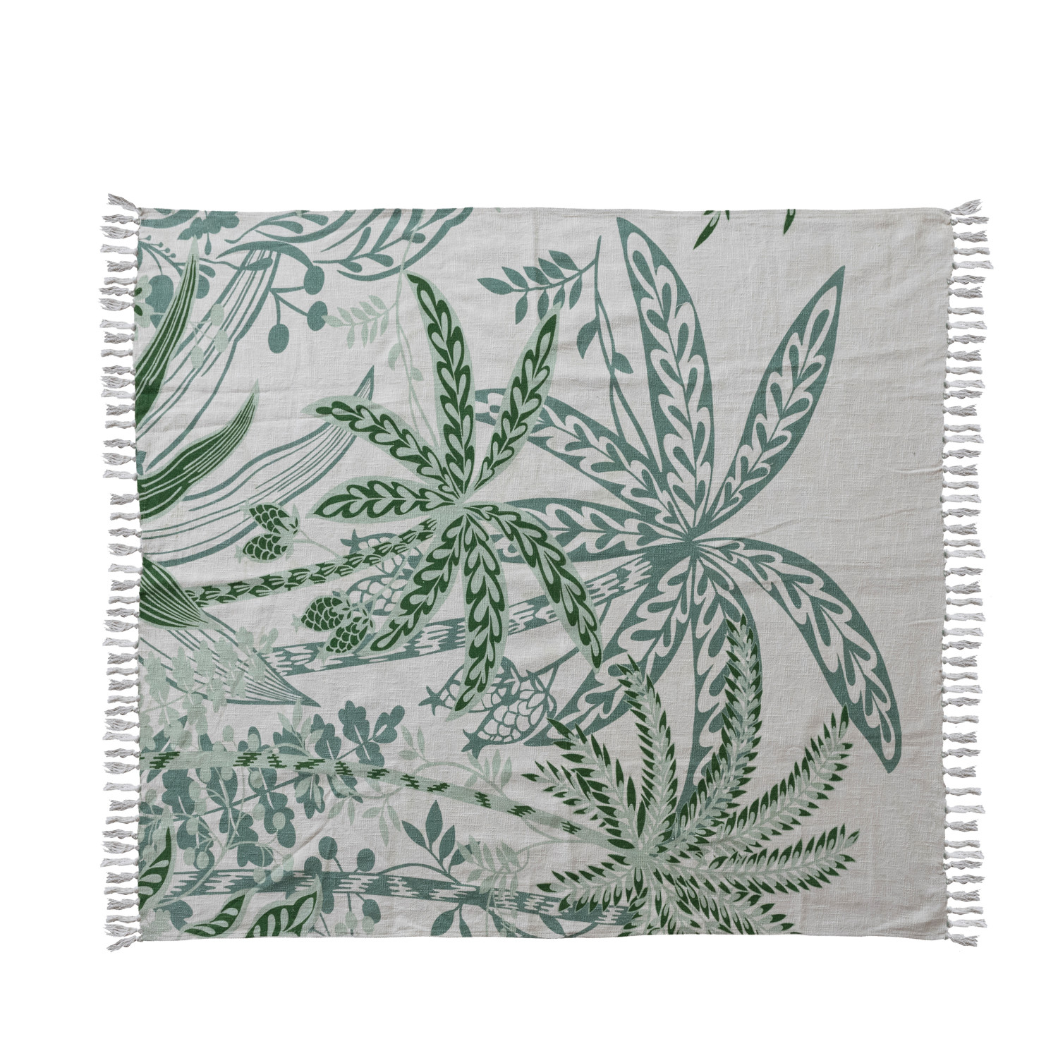 Cotton Slub Printed Throw with Palm Trees & Fringe