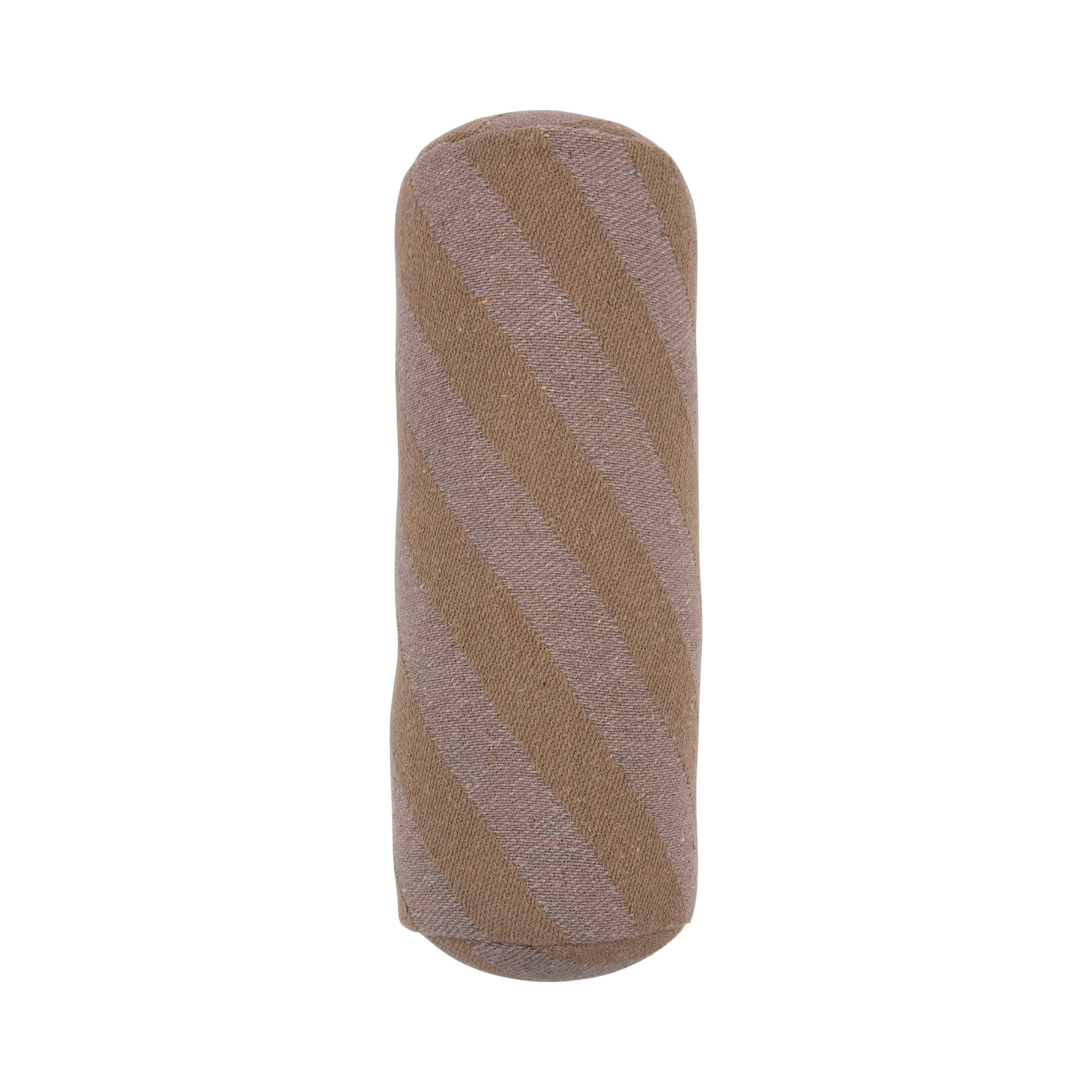 This mid-century-inspired bolster pillow features recycled cotton blend construction with woven 2-tone stripes. Lavender and taupe striped woven recycled cotton bolster pillow. Express your constantly evolving style with the simple addition of this eye-catching pillow. Spot clean only.