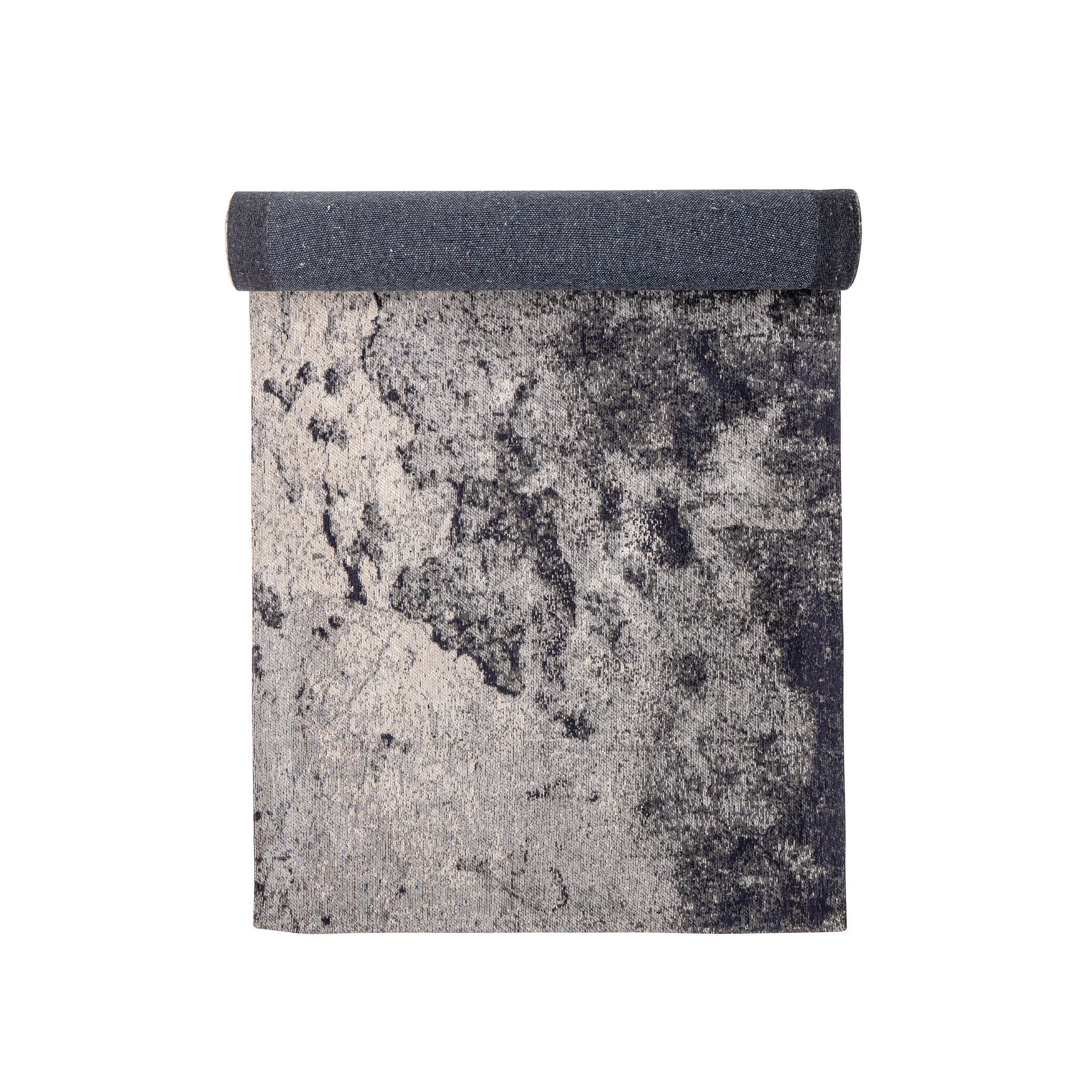 This 2-1/2' x 8' Cotton Marbled Blue and Grey Runner is the perfect way to add dimension. It will add texture to any room with its moonscape-like pattern. A natural addition to indoor space, this jute runner is looks great layered over wood floors, under coffee tables, and more. The tones are a sure fit for modern aesthetics, but work with a most designs.