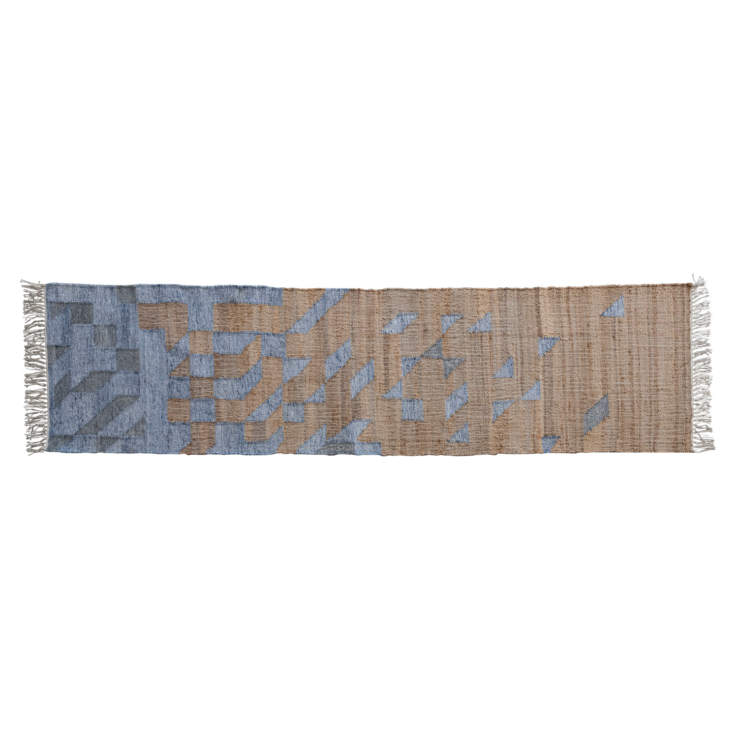 Our thoughtfully curated collection of rugs showcases a wide array of lush woven textures, prints, embroidery, and silhouettes to instantly transform any space. Explore a wide variety of pieces to bring warmth to any space including doormats, patchwork, dhurrie rugs, circle rugs, tufted area rugs, floor runner rugs, and so much more. Choose from vast selection of materials from pieced leather and jute to handwoven cotton and wool, and styles from mid-century modern and global to contemporary boho and traditional farmhouse. Effortlessly bring depth, warmth, and texture to a living space with a thoughtfully placed rug that is sure to impress. This unique runner rug features masterfully woven jute and cotton kilim in a cascading geometric design, finished with decorative fringe. Display in a living or dining space of any style from Scandinavian to farmhouse. Spot Clean Only. Made from jute and polyester.