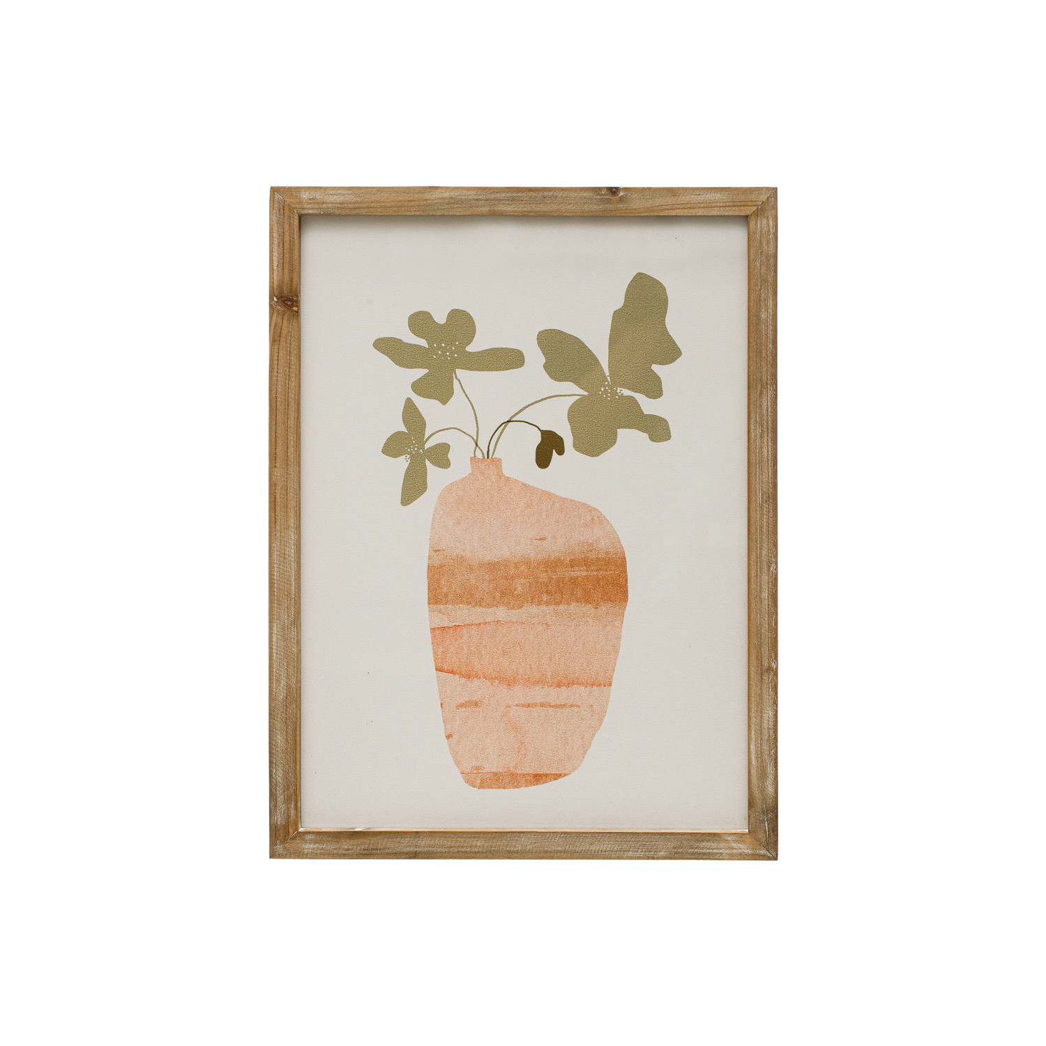 From framed canvases and abstract art compositions, to vintage reproductions and botanical prints, our carefully curated collection of wall art has the perfect item to complete any space. Explore an expansive catalog of pieces including nature-inspired prints, line drawings, inspirational quotes, hand-painted designs, and so much more. Choose from a vast selection of materials from glass and wood to canvas and fabric, and styles from contemporary boho and mid-century modern to classic farmhouse and vintage glam. Effortlessly amplify a room's dimensions, express personal style, create a stylish focal point, or simply make the perfect design statement or unique addition to a gallery wall. This boho-inspired wall art features a contemporary print of flowers in a vase encased in a solid wood frame. Display in a living space of any style from modern to French country. Equipped with mounting hardware on back for easy hanging. Made from wood and glass.