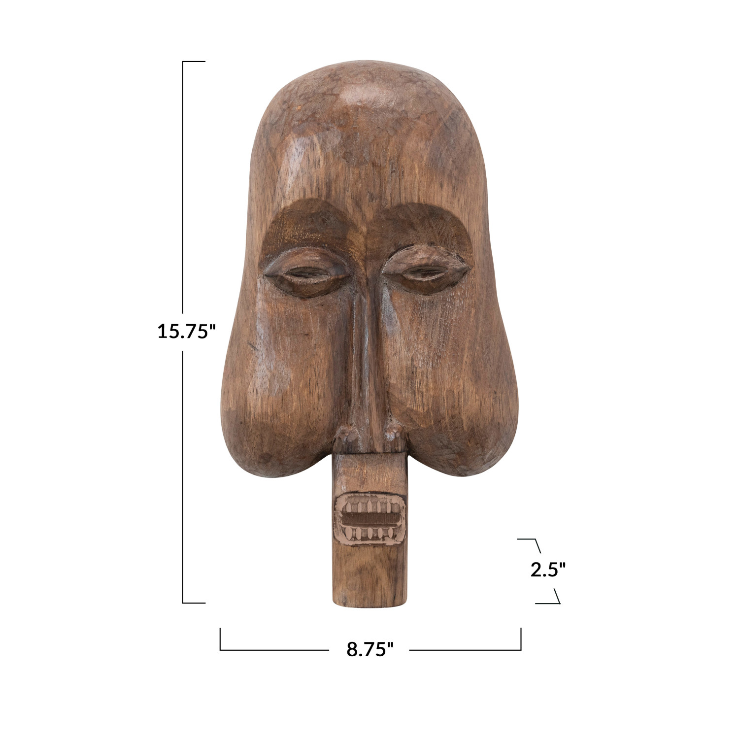 Catalog Name: 8-3/4"L x 2-1/2"W x 15-3/4"H Hand-Carved Albasia Wood Mask Wall Décor, Natural (Each One Will Vary)