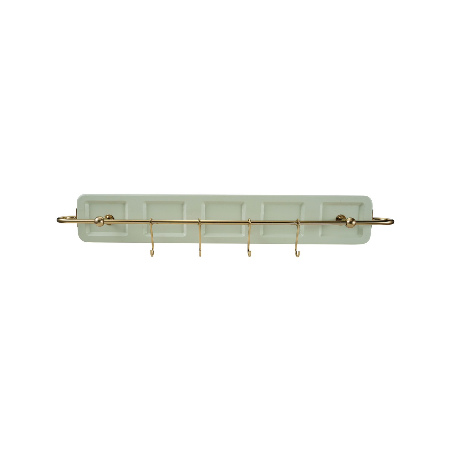 Catalog Name: 26"W x 3"D x 4-3/4"H MDF & Metal Wall Hook w/ 4 Hooks, Mint Color & Gold Finish