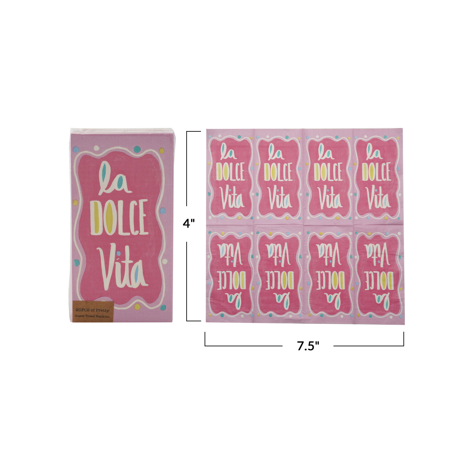 Catalog Name: 7-1/2"L x 4"W Paper Napkins "La Dolce Vita", Multi Color (Contains 20 Folded Pieces) ©