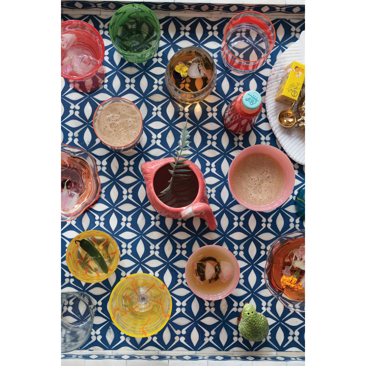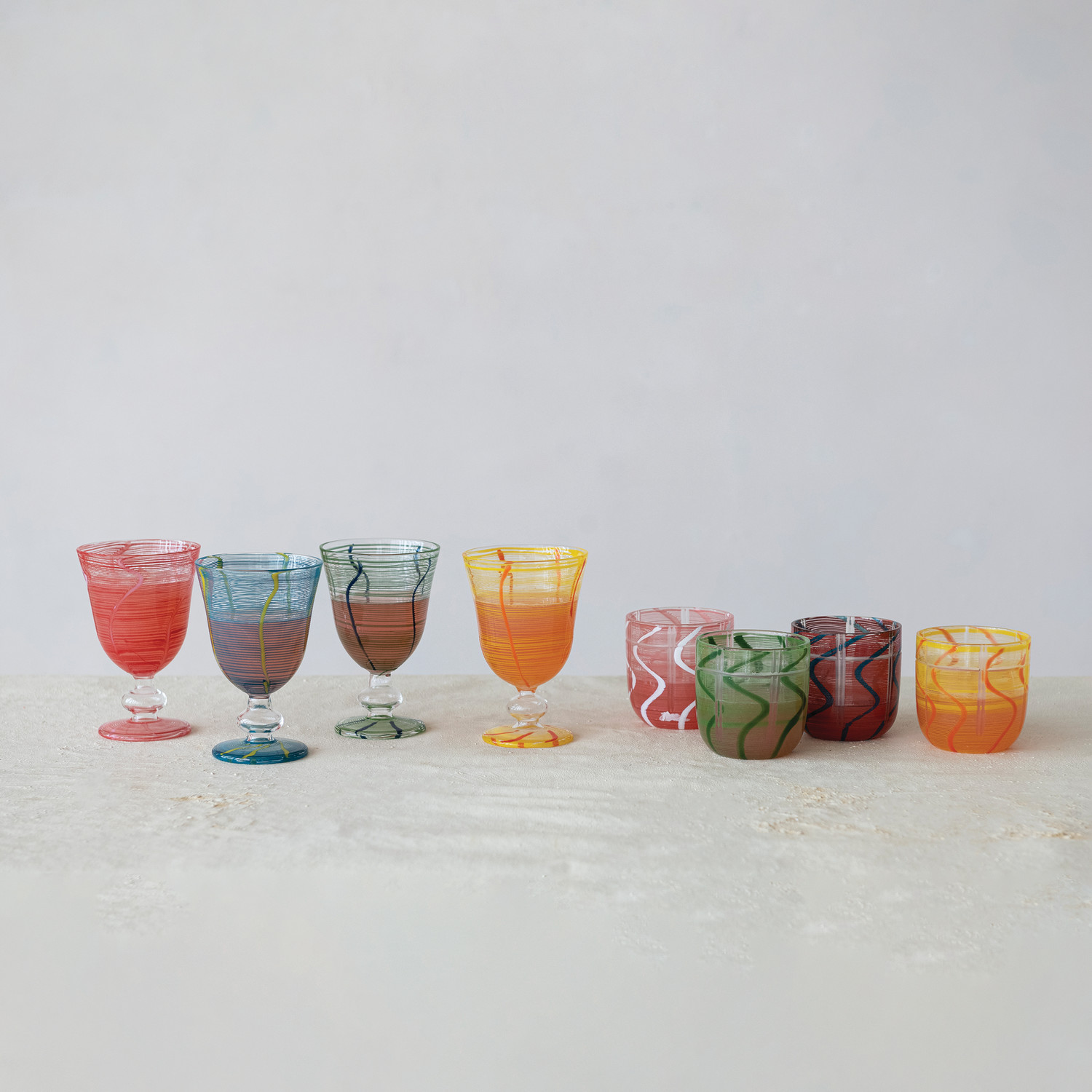 8 oz. Stemmed Wine Glass with Stripes & Wave Design, 4 Colors (Each One Will Vary)