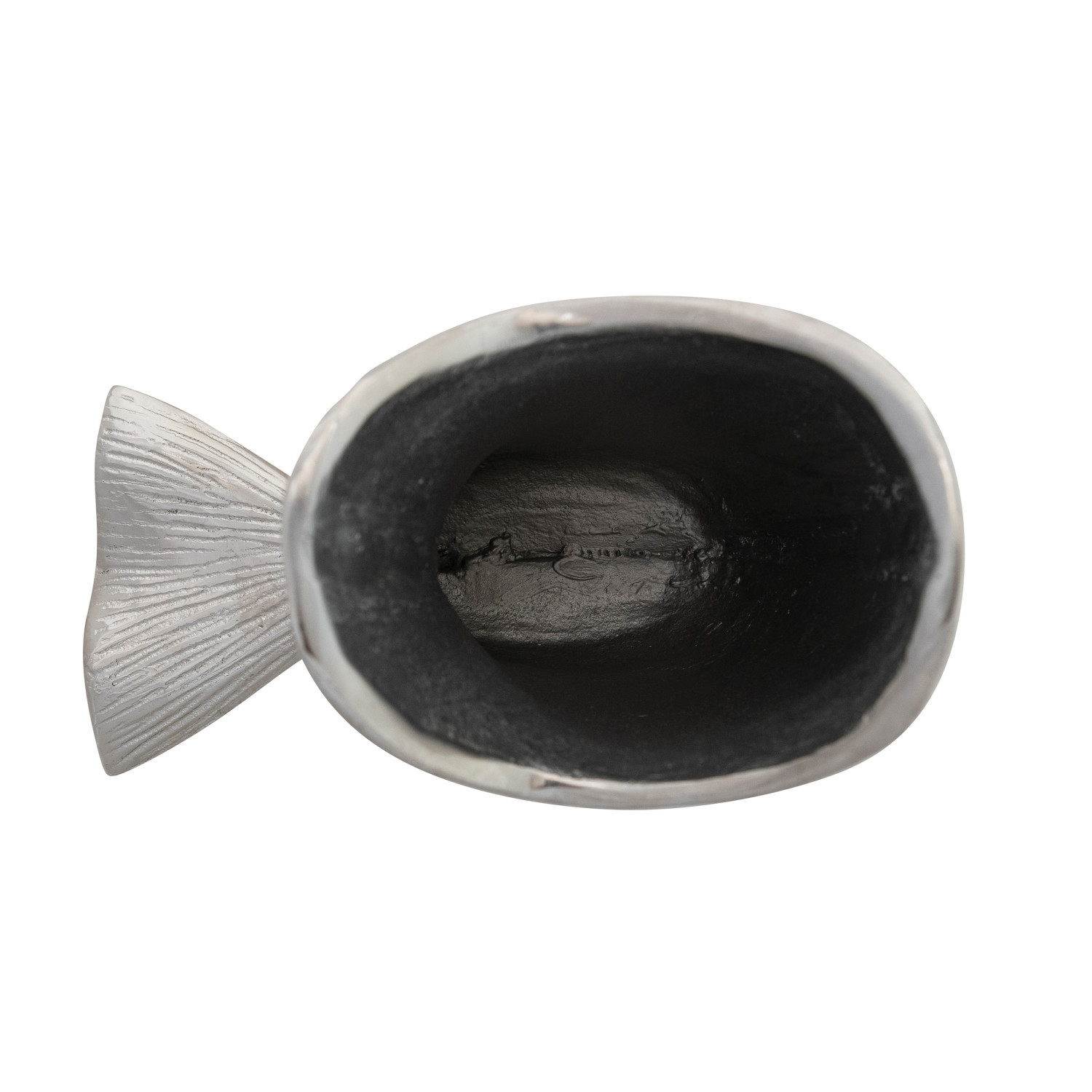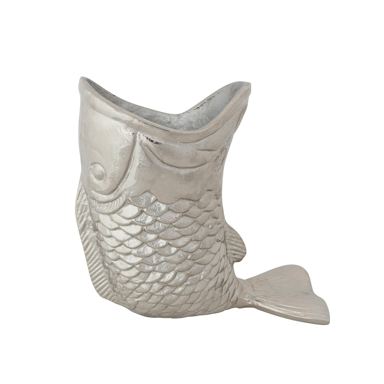 Catalog Name: 10-1/2"L x 5"W x 9-3/4"H Cast Aluminum Fish Shaped Bottle Holder, Nickel Finish