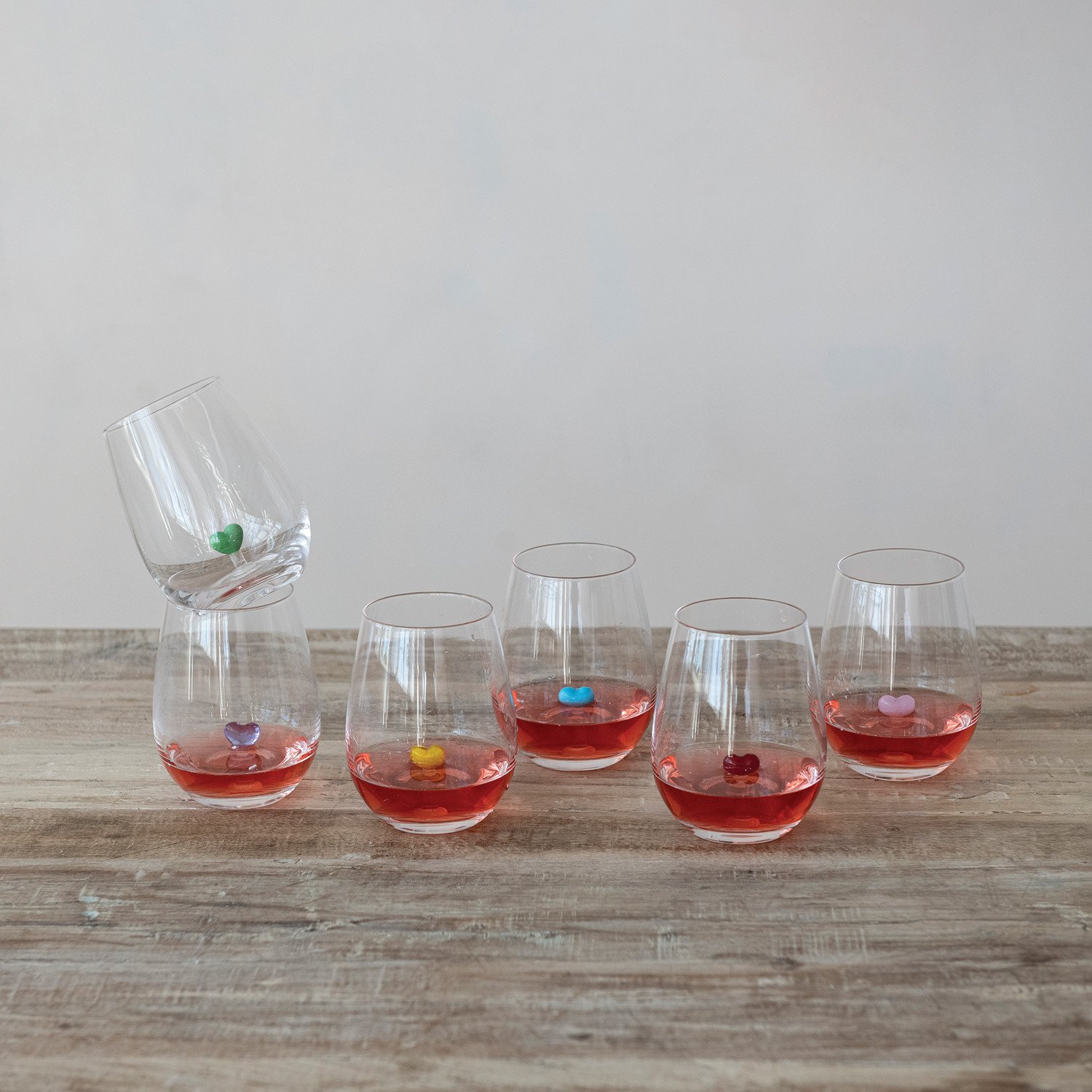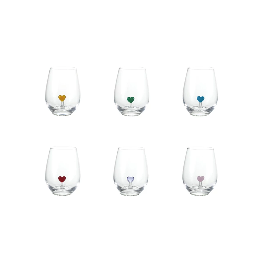18 oz. Stemless Wine Glass with Hand-Blown Heart Inside, 6 Colors