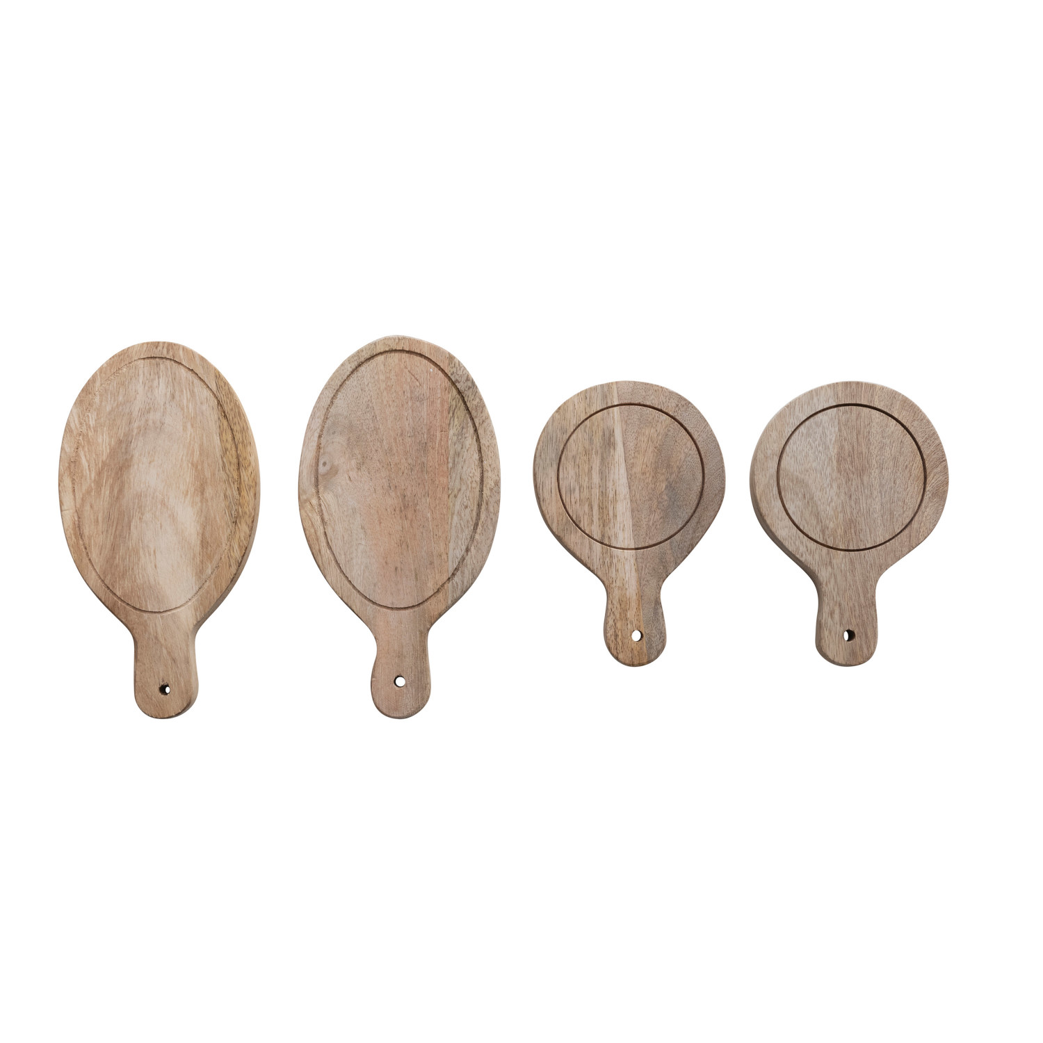 Mango Wood Serving Boards w/ Handles, Natural, 2 Styles, Set of 4