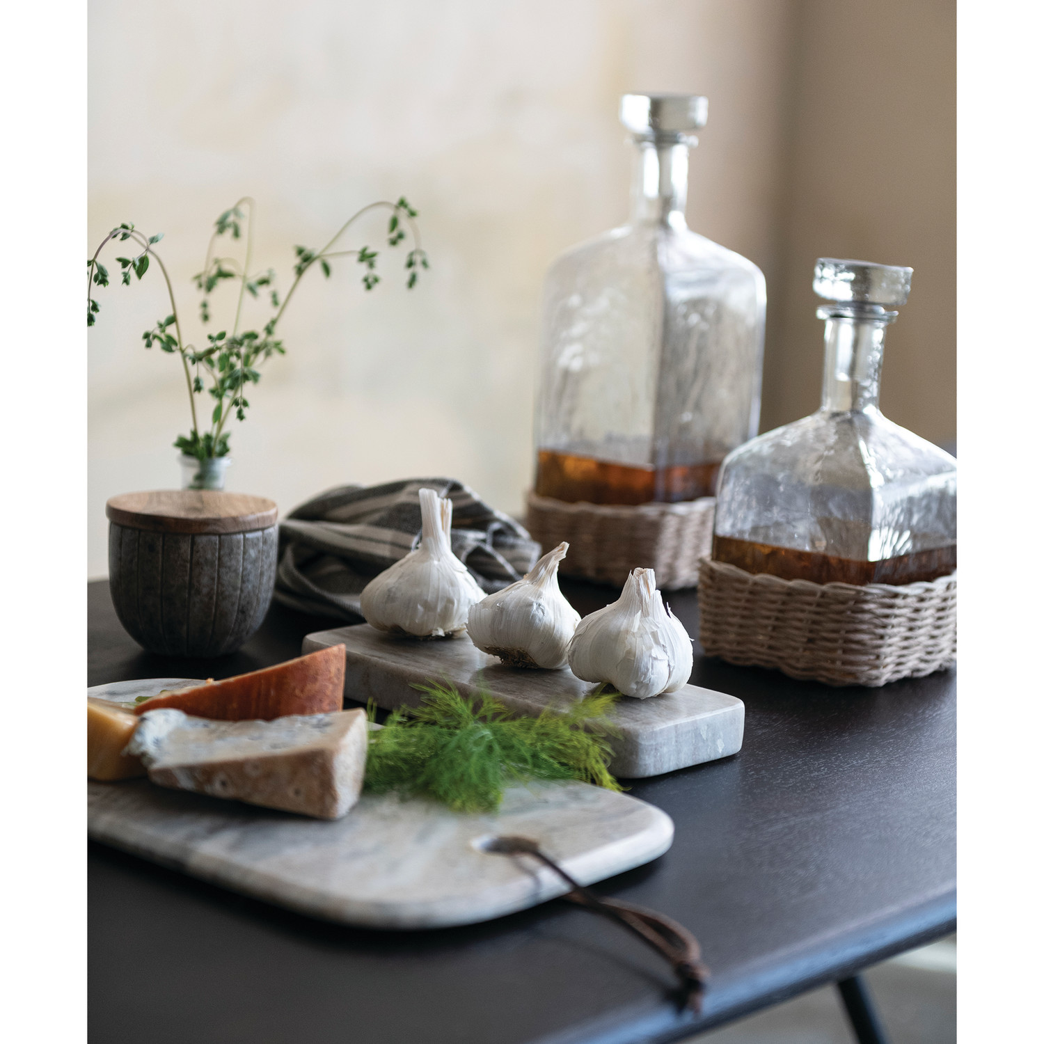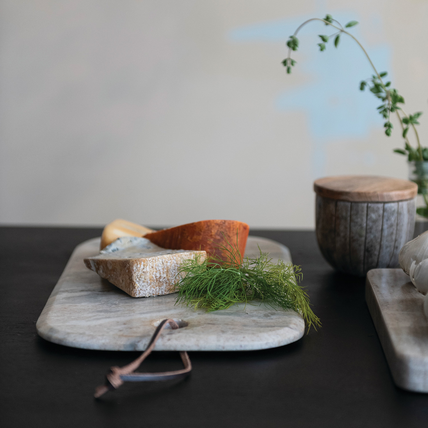 Catalog Name: 15"L x 8-3/4"W Marble Cheese/Serving Board w/ Leather Tie, Buff Color (Each One Will Vary)