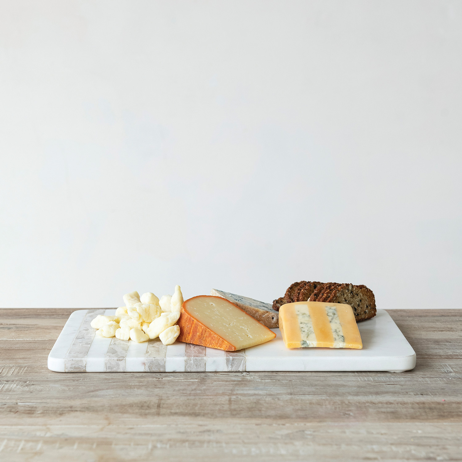 Catalog Name: 15"L x 9"W Marble Cheese/Serving Board w/ Stripes, White & Buff Color