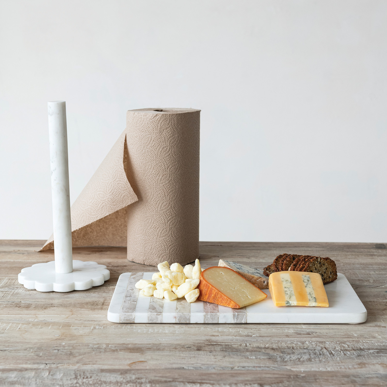 Marble Cheese/Serving Board with Stripes, White & Buff Color