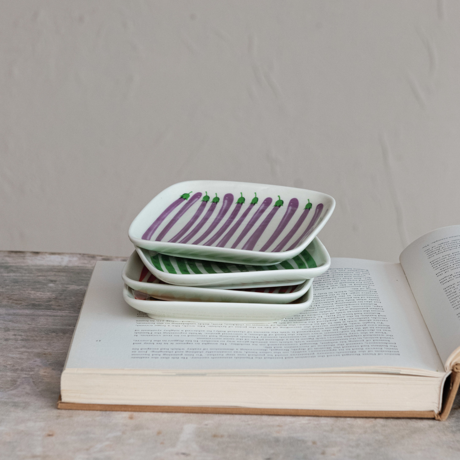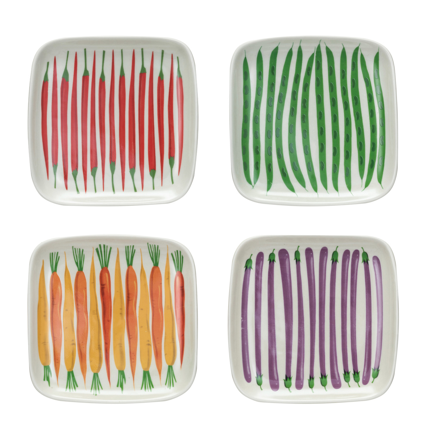 Catalog Name: 5-3/4" Square Hand-Painted Stoneware Plate w/ Vegetables Pattern, Multi Color, 4 Styles