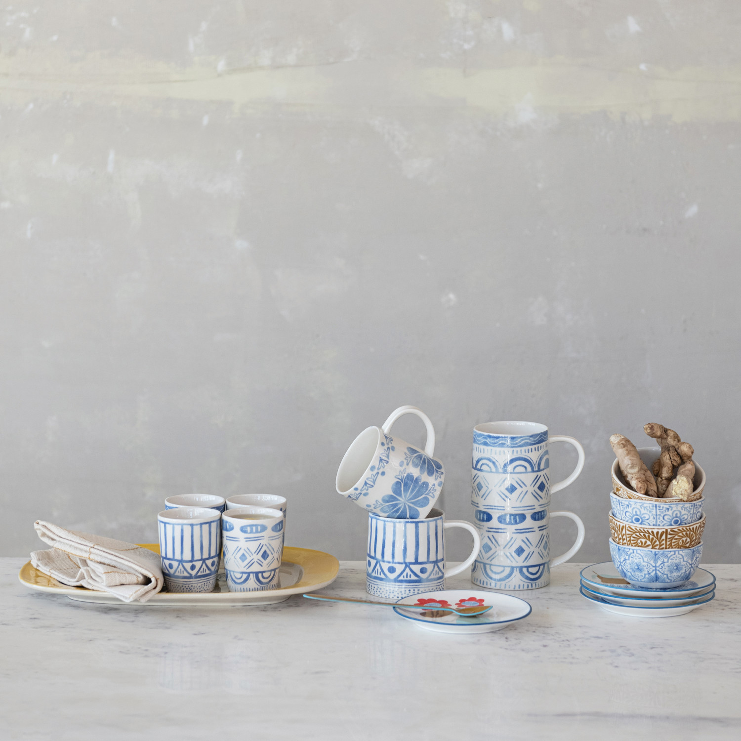 Catalog Name: 6" Round Stoneware Plate w/ Fruit/Flower Image & Blue Rim, Multi Color, 4 Styles ©