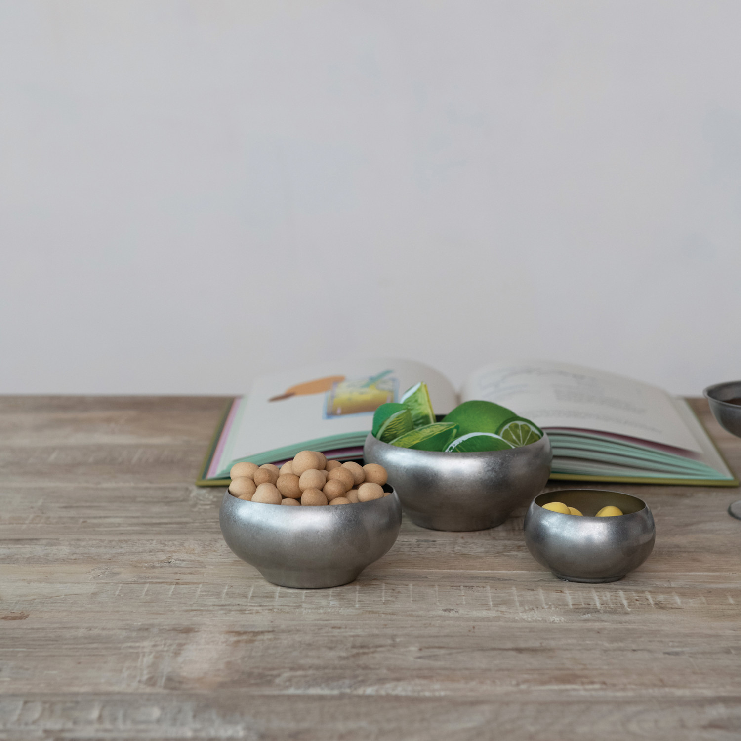 Stainless Steel Nesting Bowls, Brushed Pewter Finish, Set of 3
