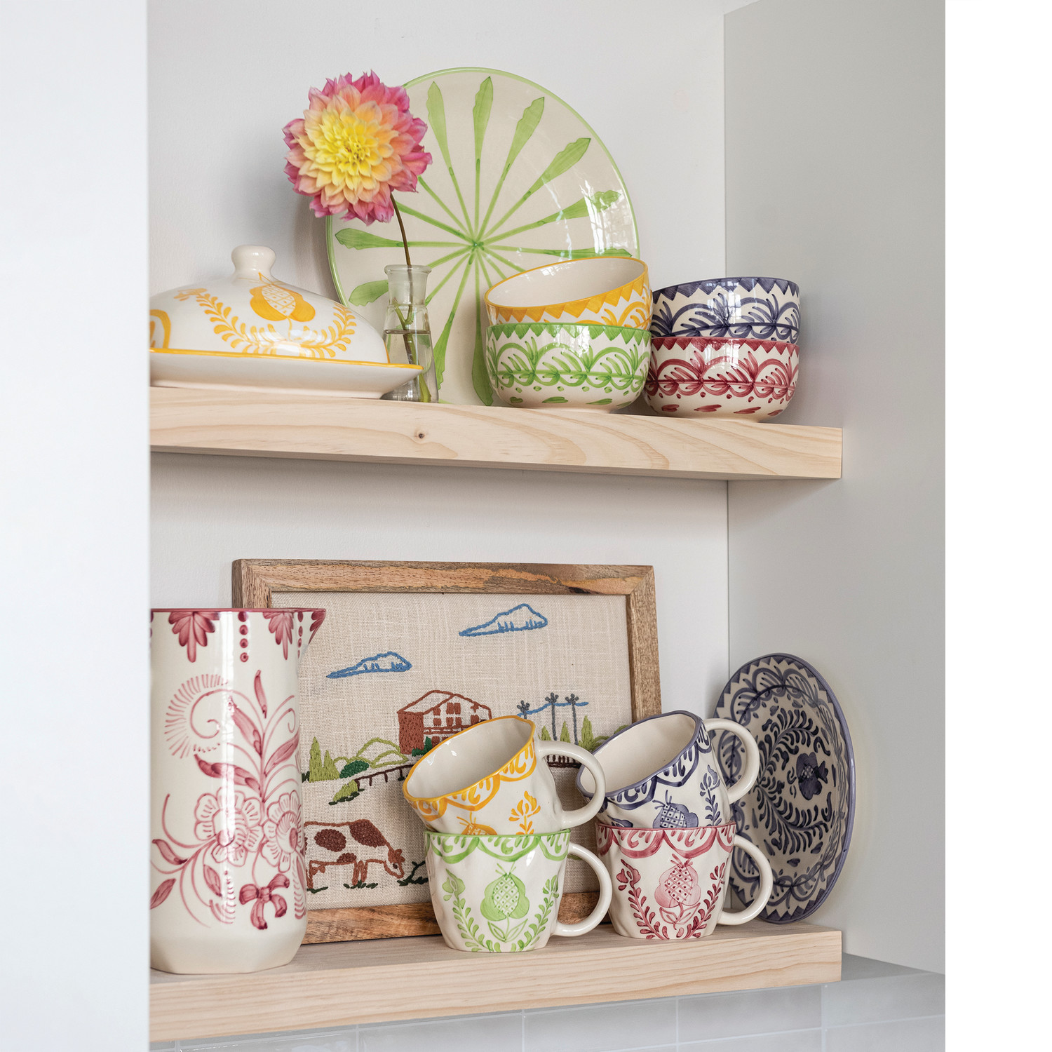 Hand-Painted Stoneware Bowl with Botanical Design, 4 Colors (Each One Will Vary)