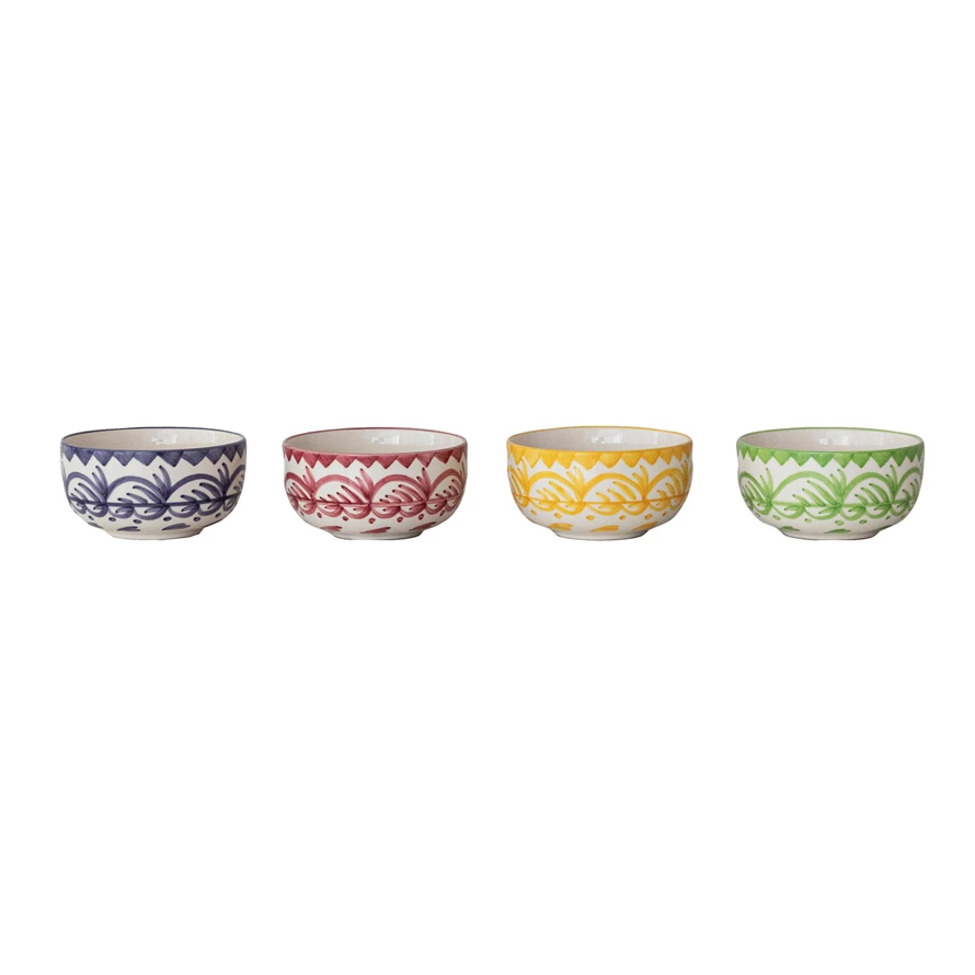 Catalog Name: 5" Round x 2-1/2"H Hand-Painted Stoneware Bowl w/ Botanical Design, 4 Colors (Each One Will Vary)
