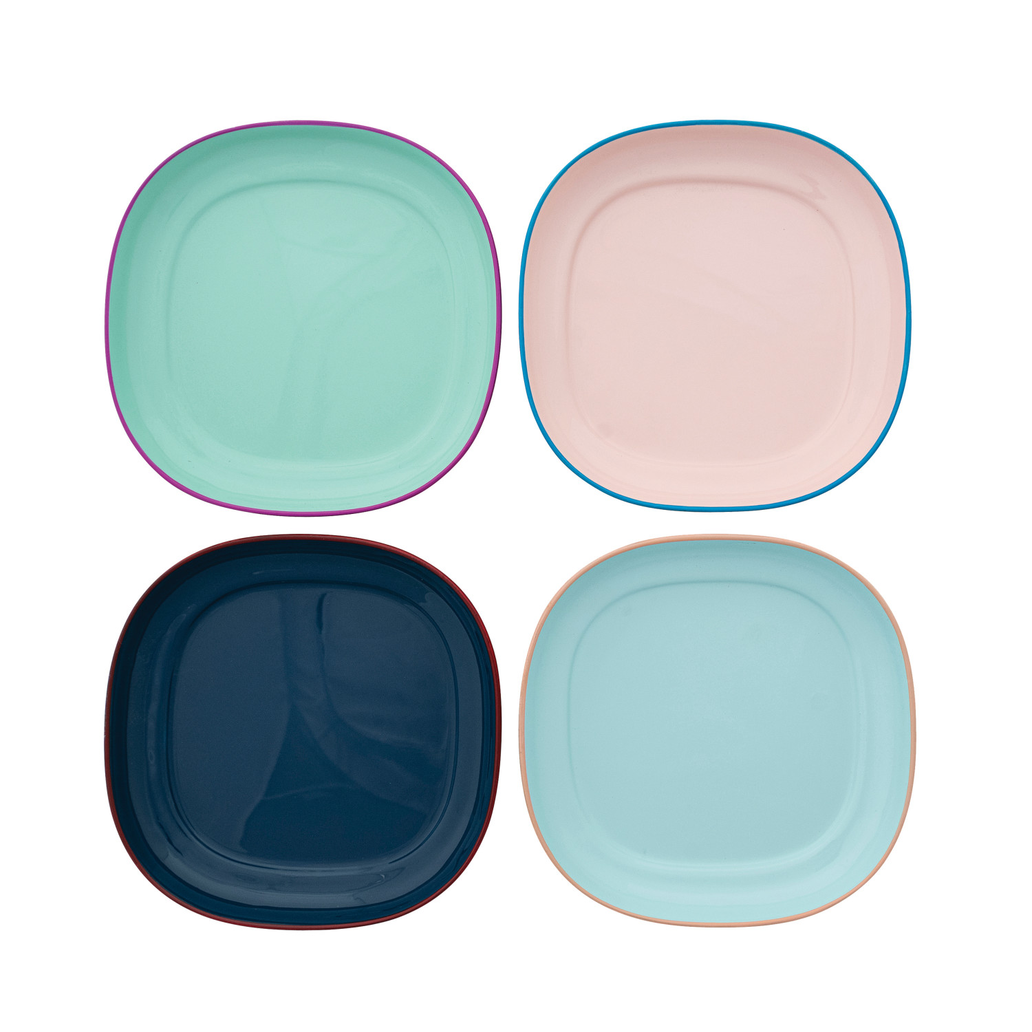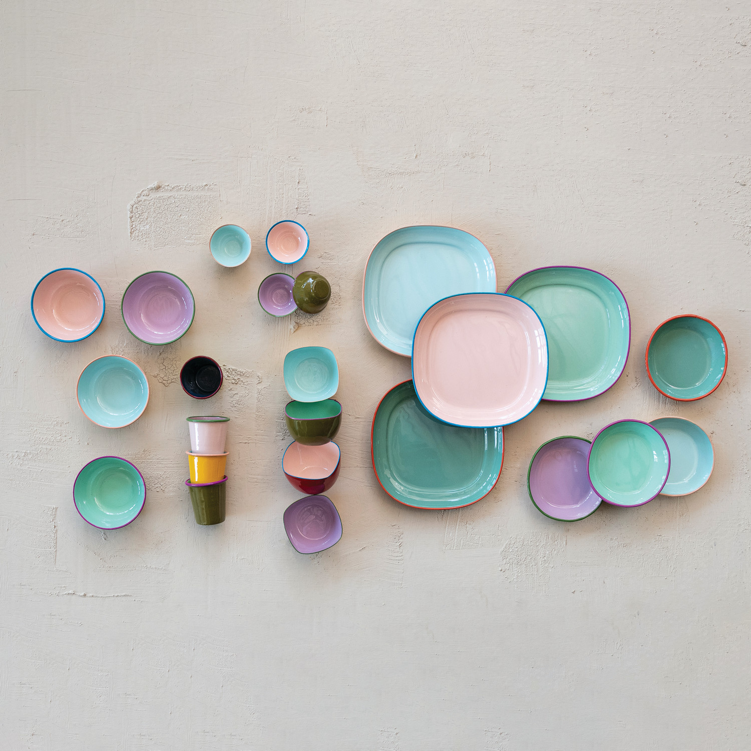 Catalog Name: 8" Square Enameled Stainless Steel Plate w/ Colored Edge, 4 Colors